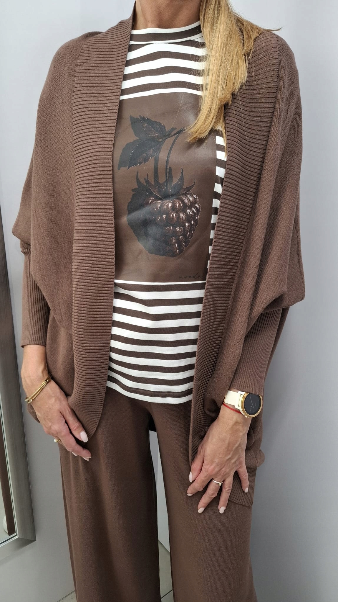 - Rewelacyjna narzutka. Wykonana z wysokiej jakości dzianiny. Sprawdzi się w wielu stylizacjach. Możliwość skompletowania z bluzką i lub ze spodniami