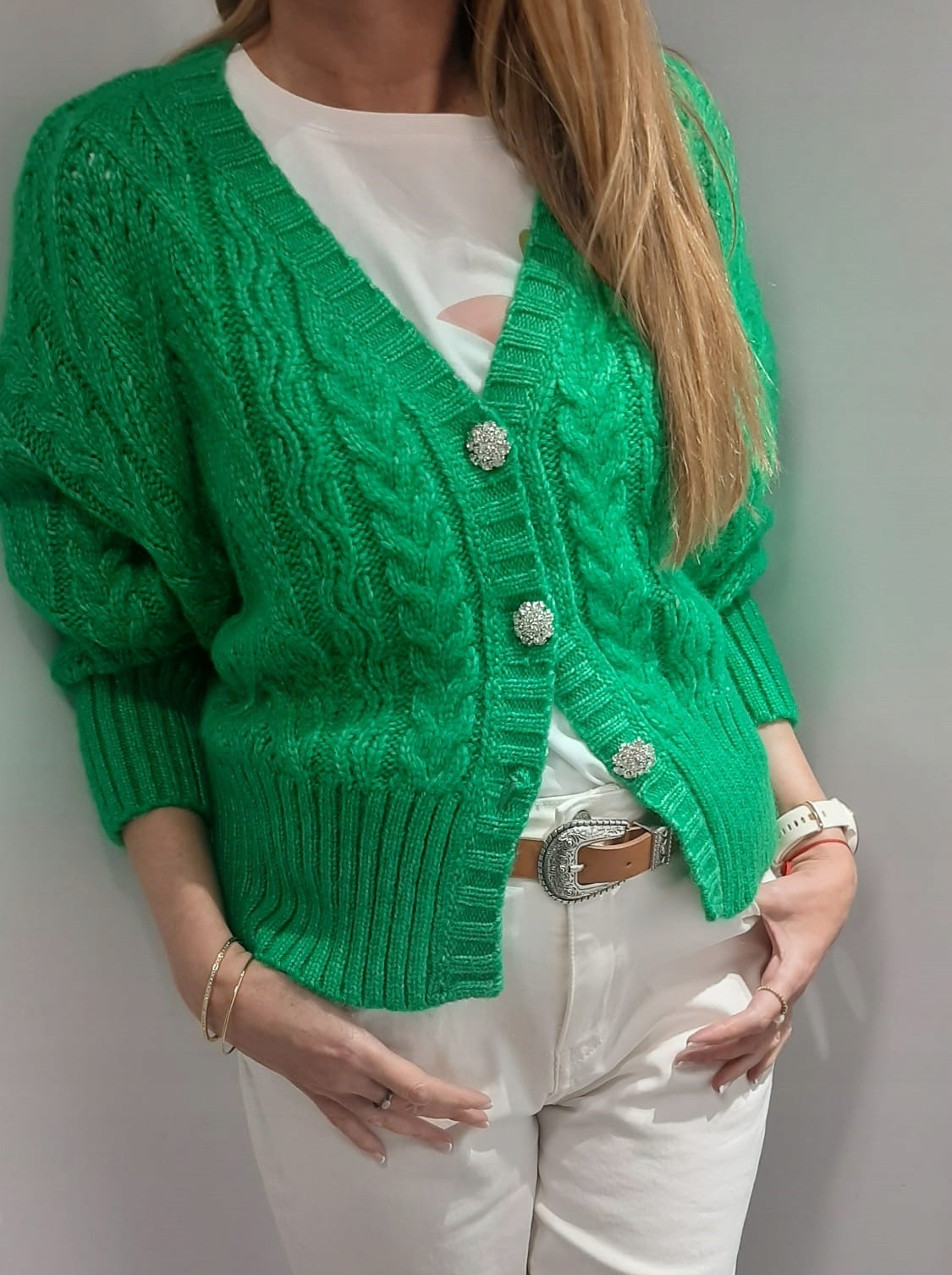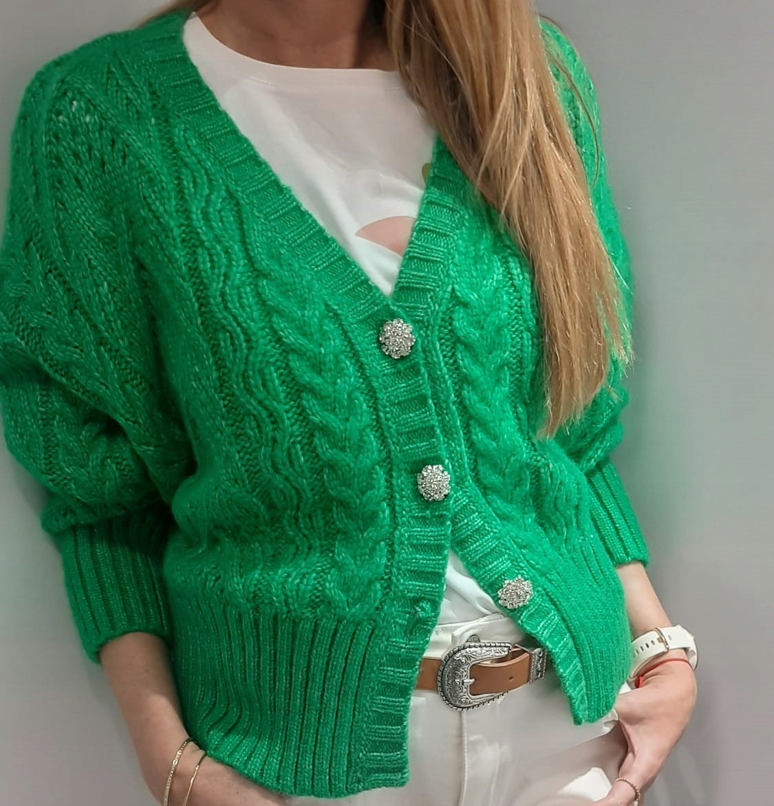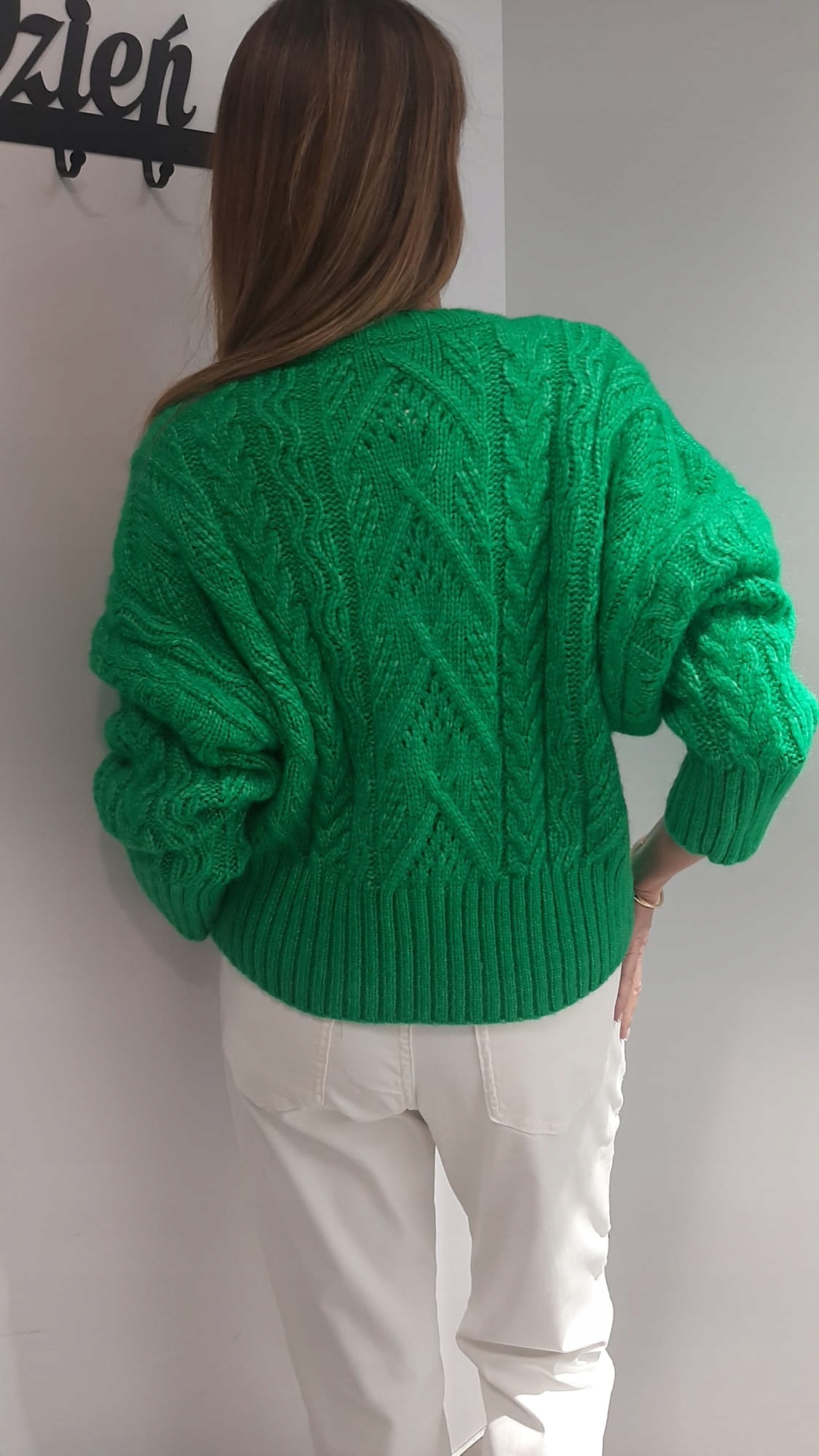 - Wyjątkowy kardigan zapinany na ozdobne guziki. Miękki i miły w dotyku