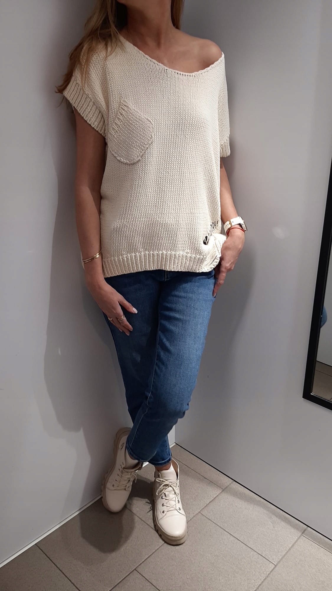 COCOMORE Sweter Oversize Boho Beżowy Nowość