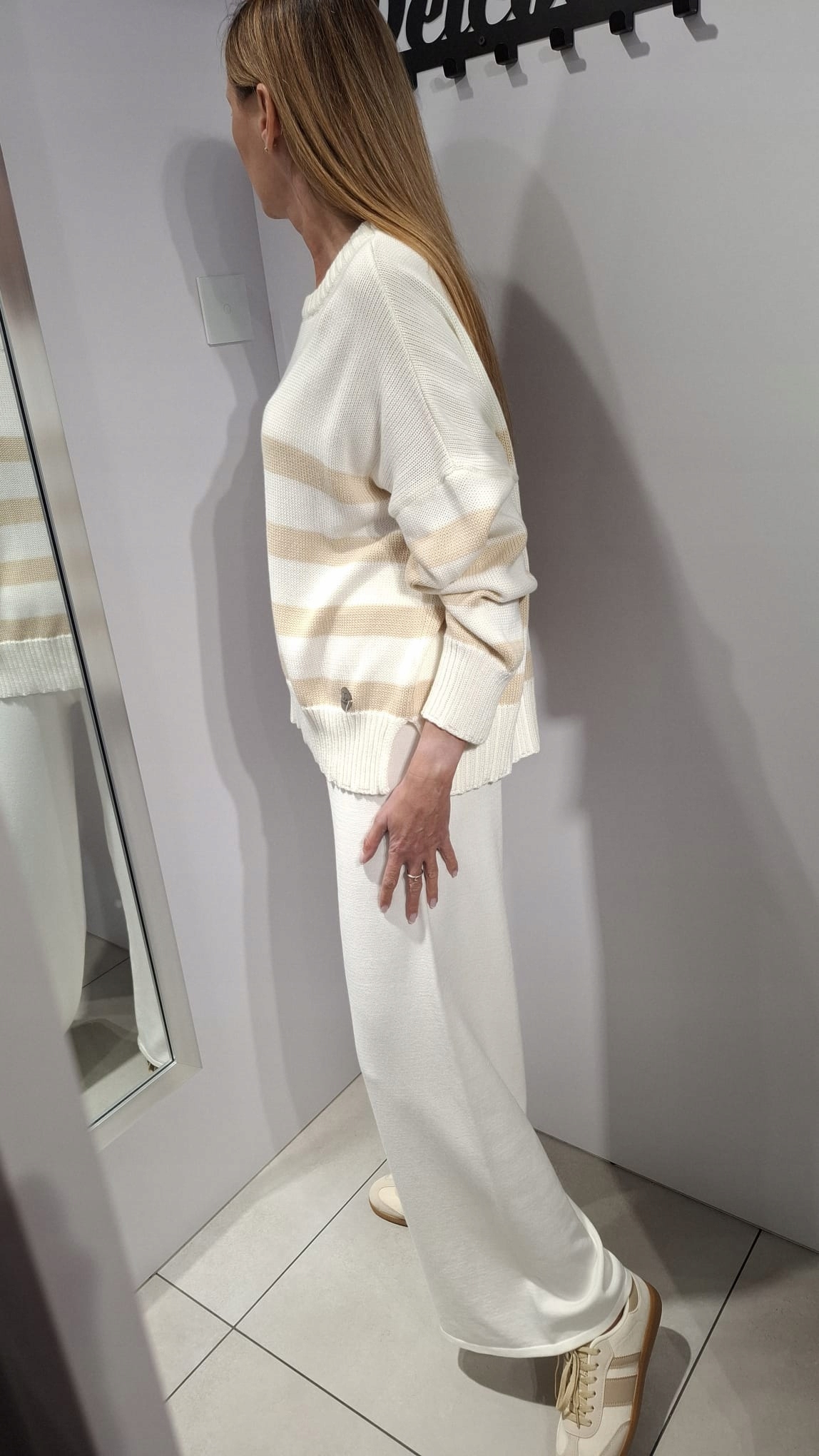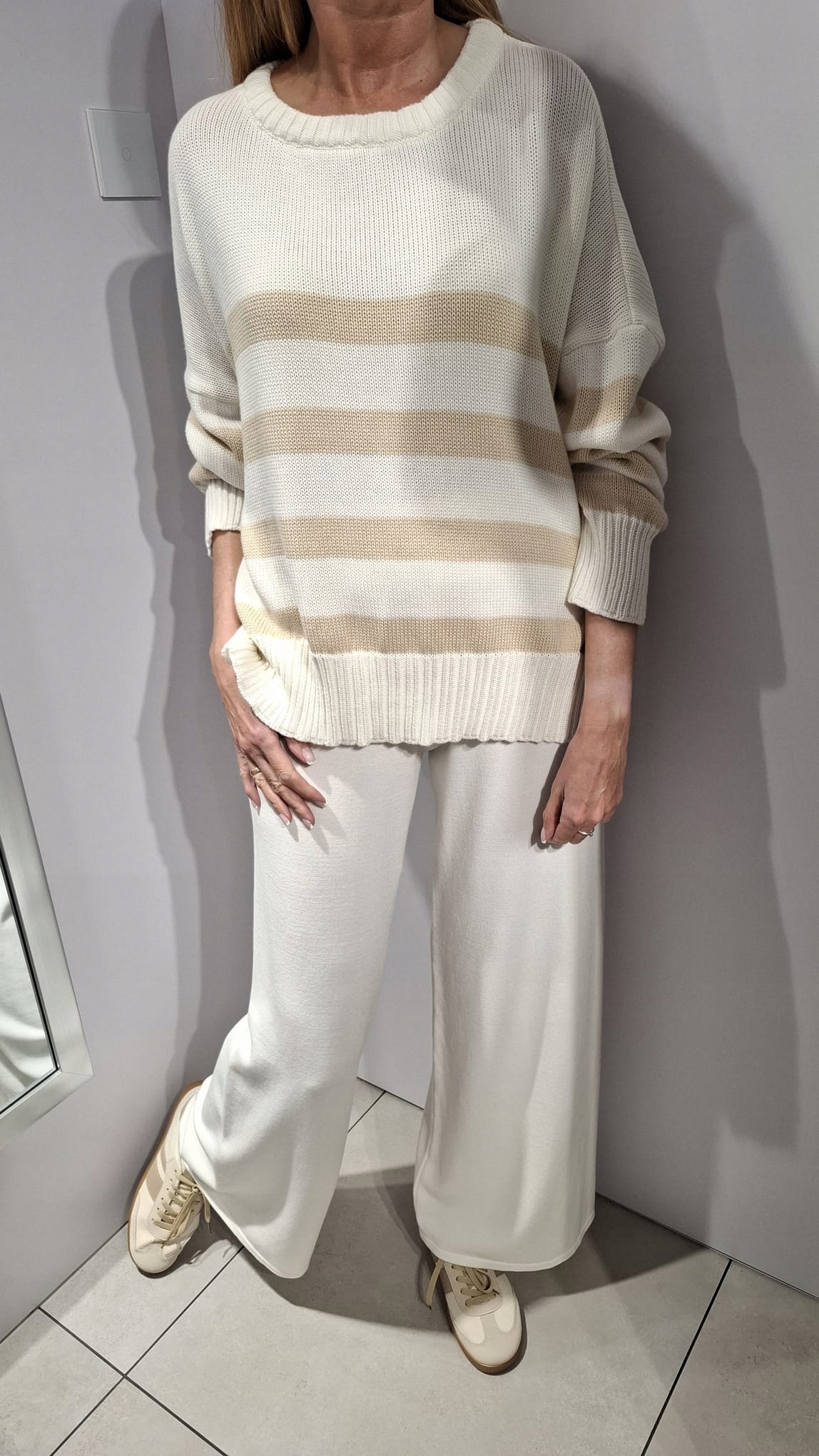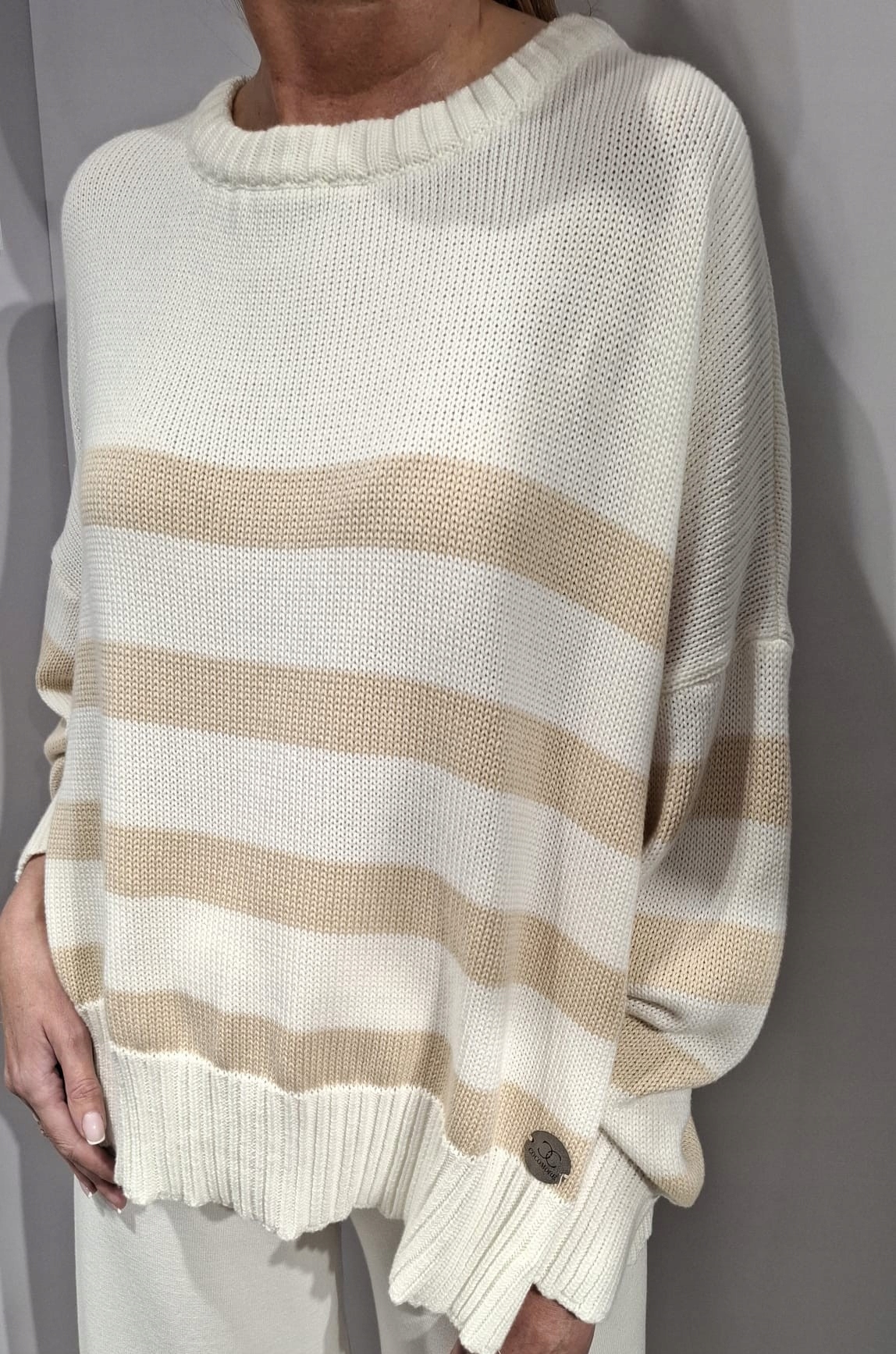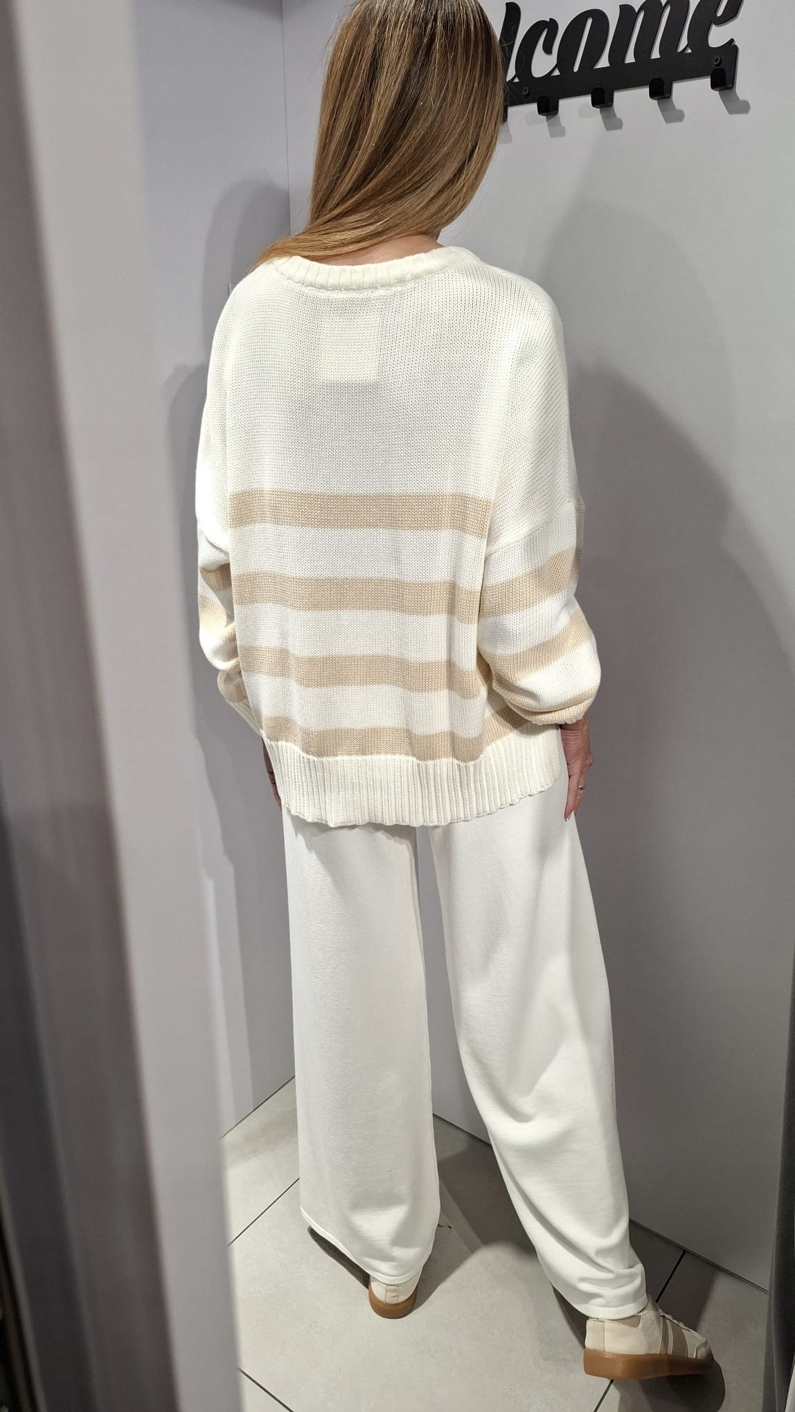 COCOMORE Sweter Oversize w Paski Ecru + Beżowy NEW