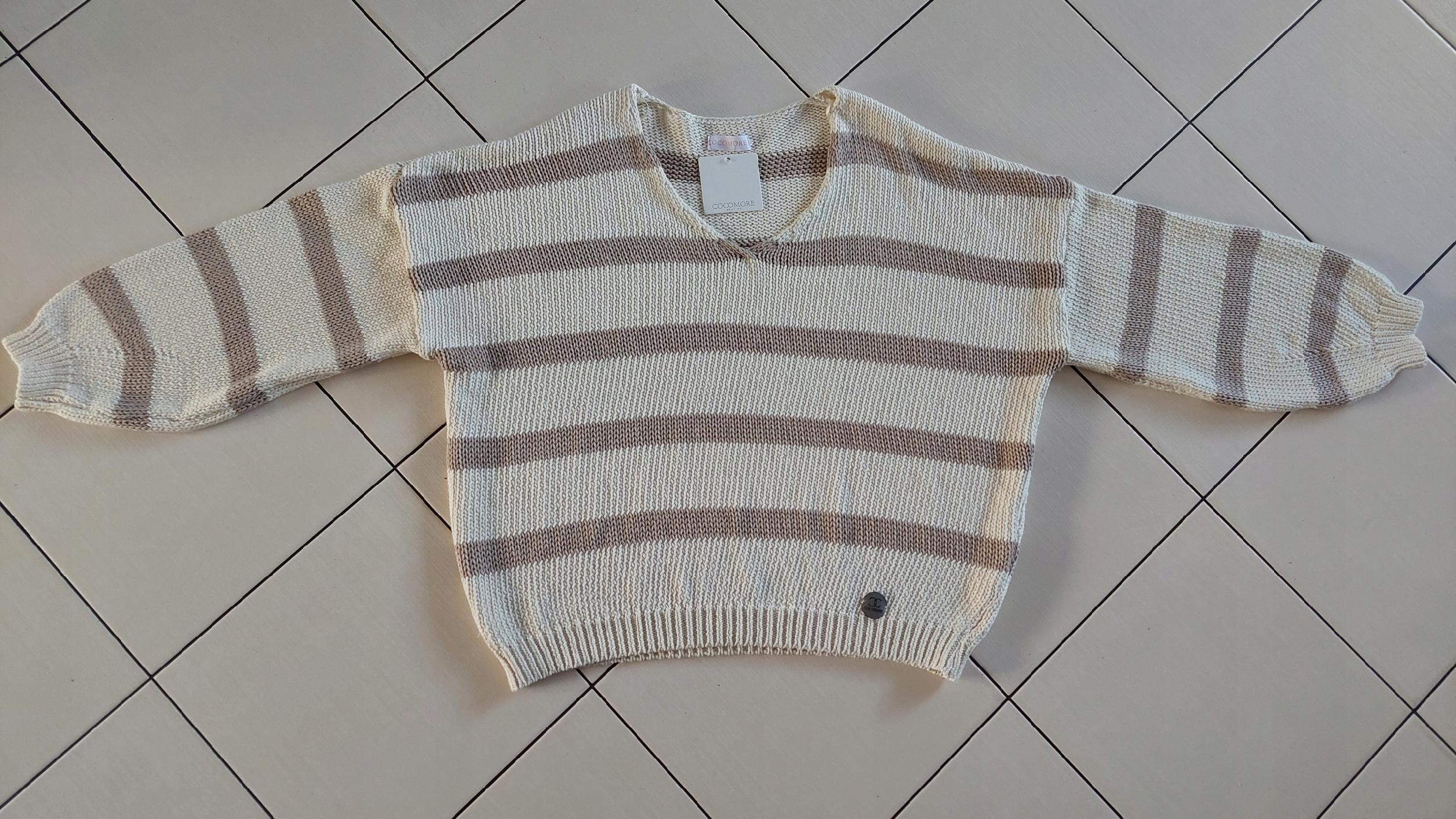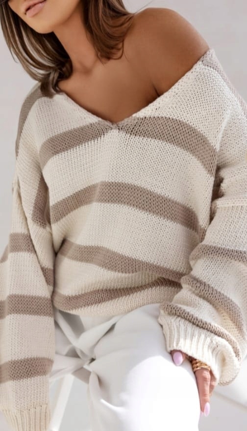 COCOMORE Sweter Oversize w Pasy Beżowy Nowość