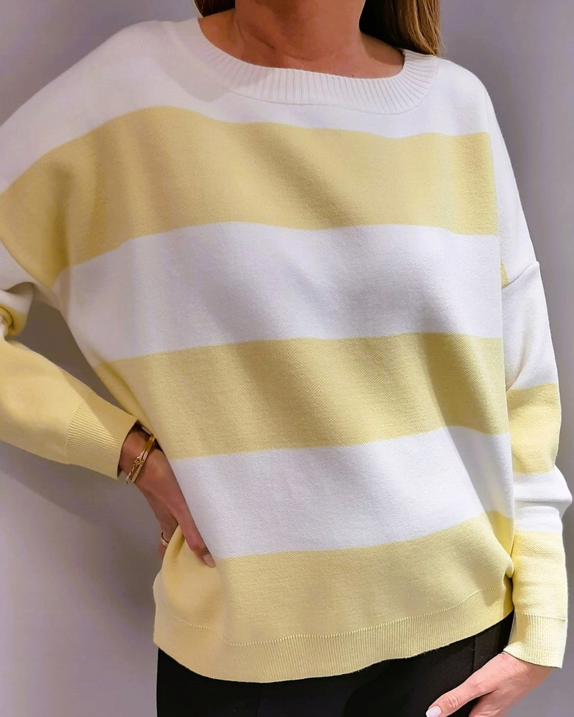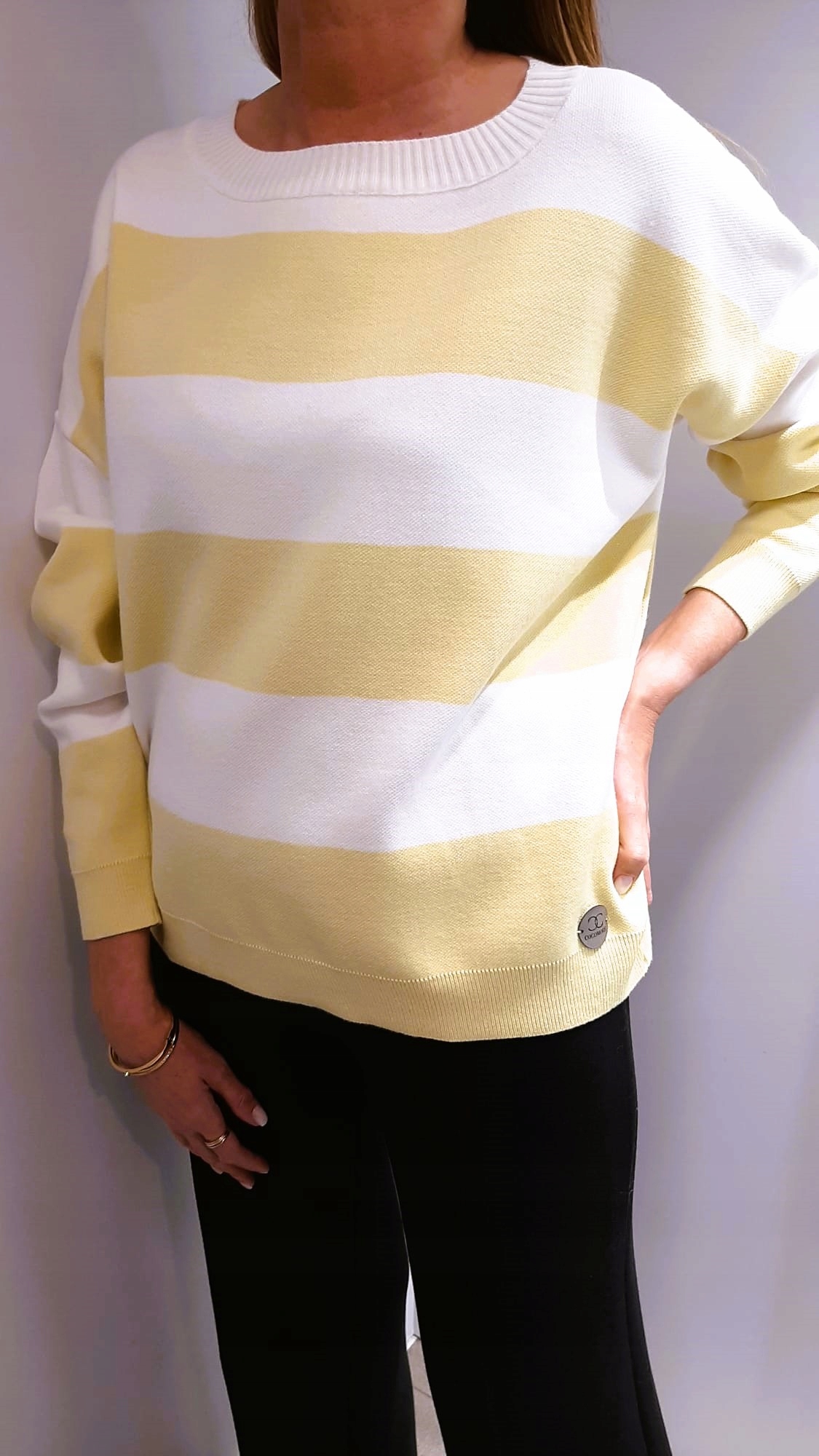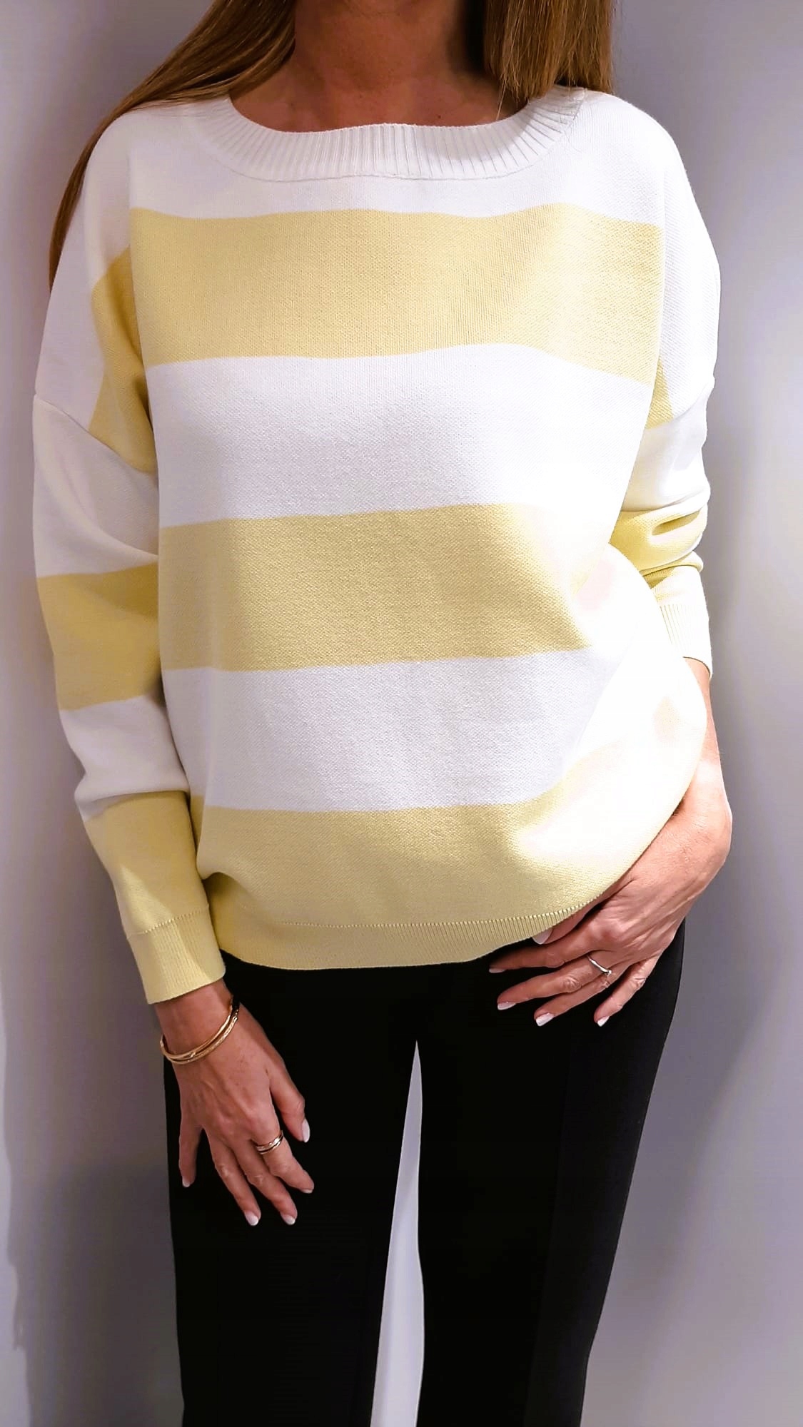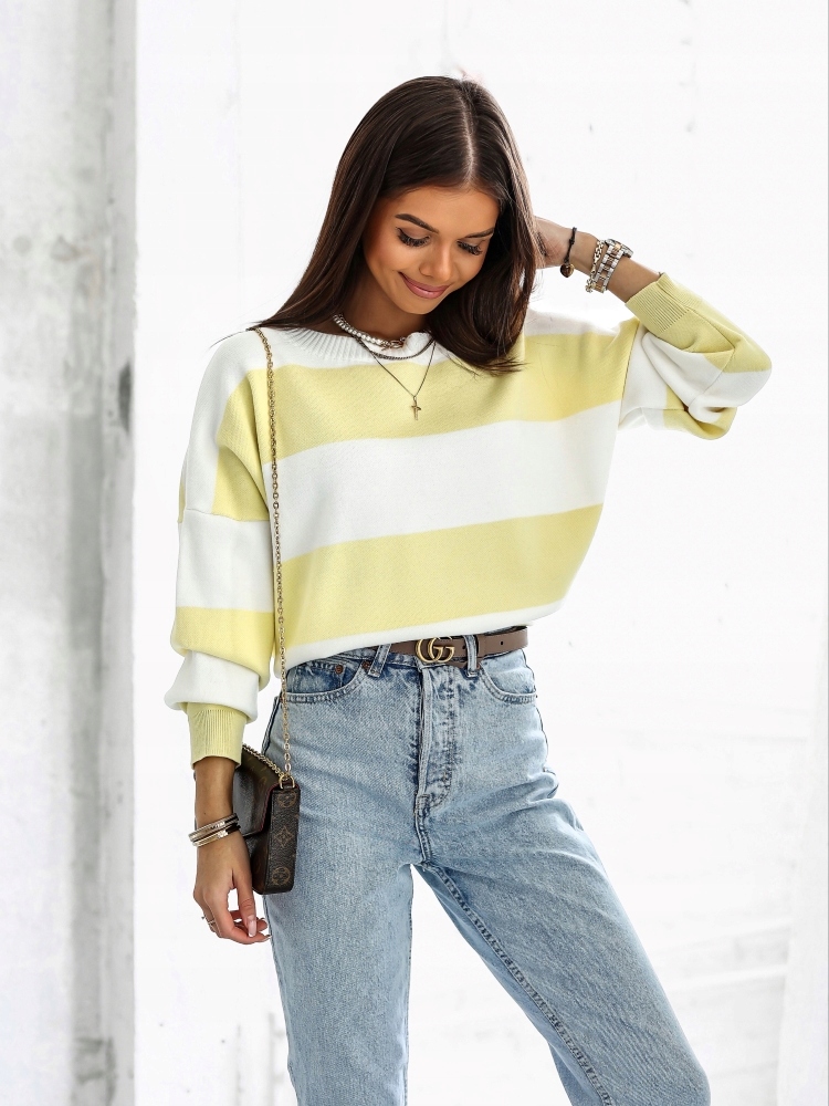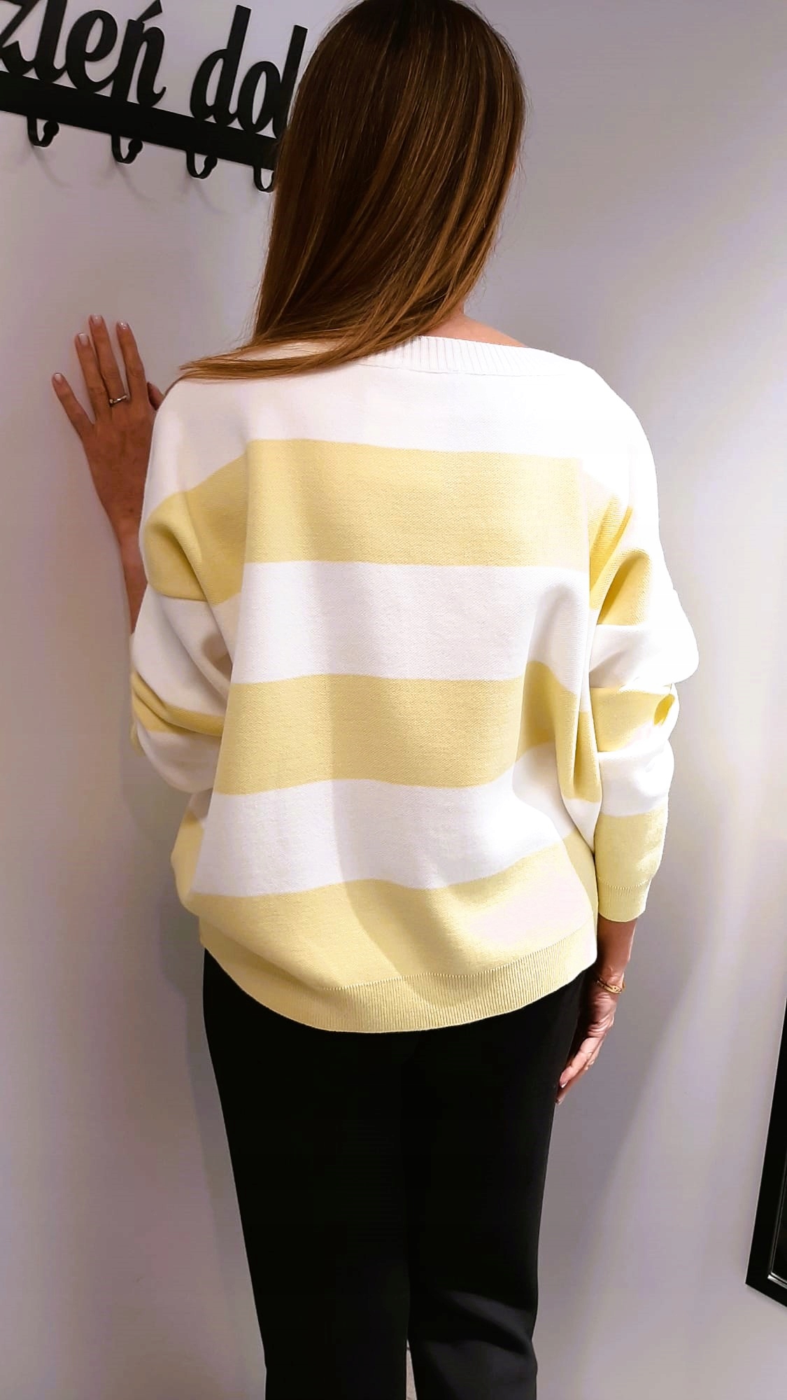 COCOMORE Sweter Pasy Żółty + Biały NEW