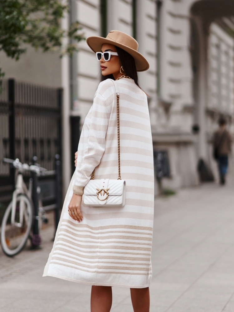 COCOMORE Sweter Płaszcz Kardigan Beżowy Paski