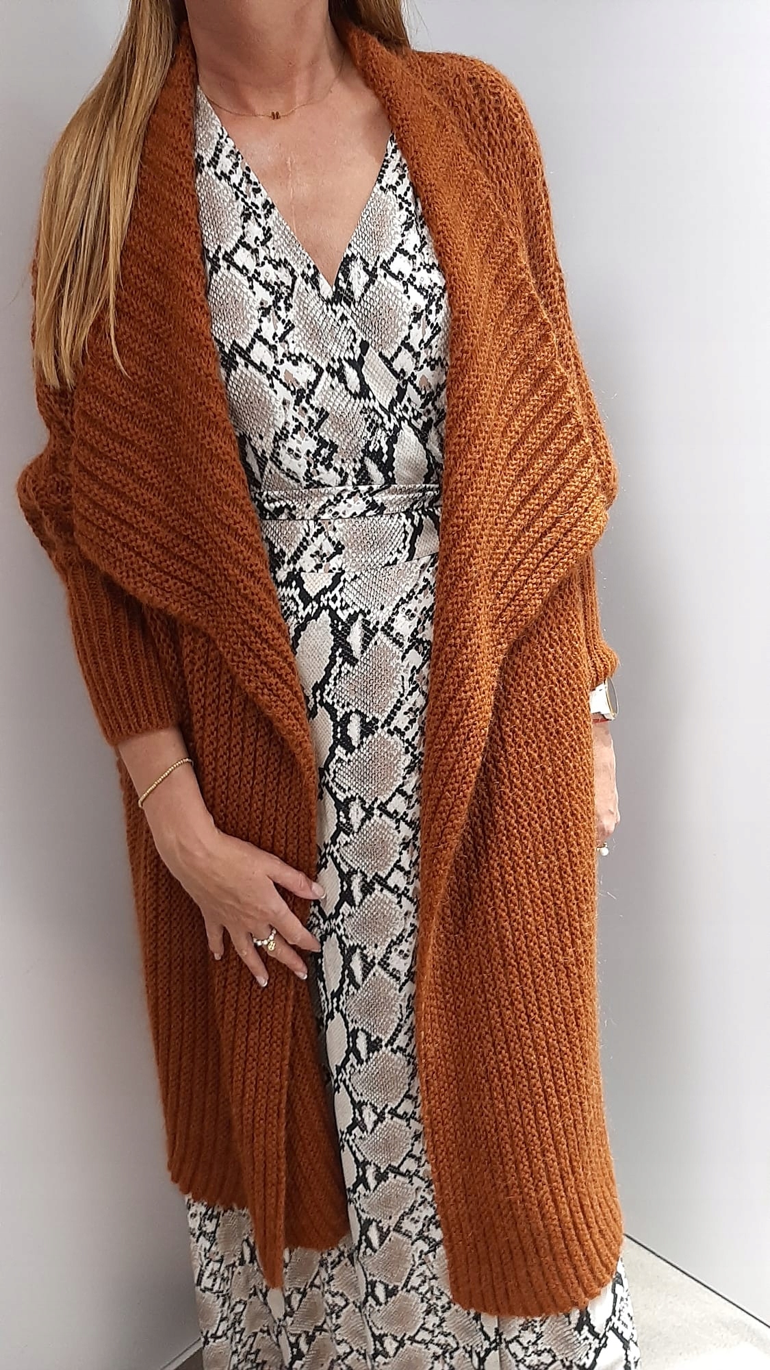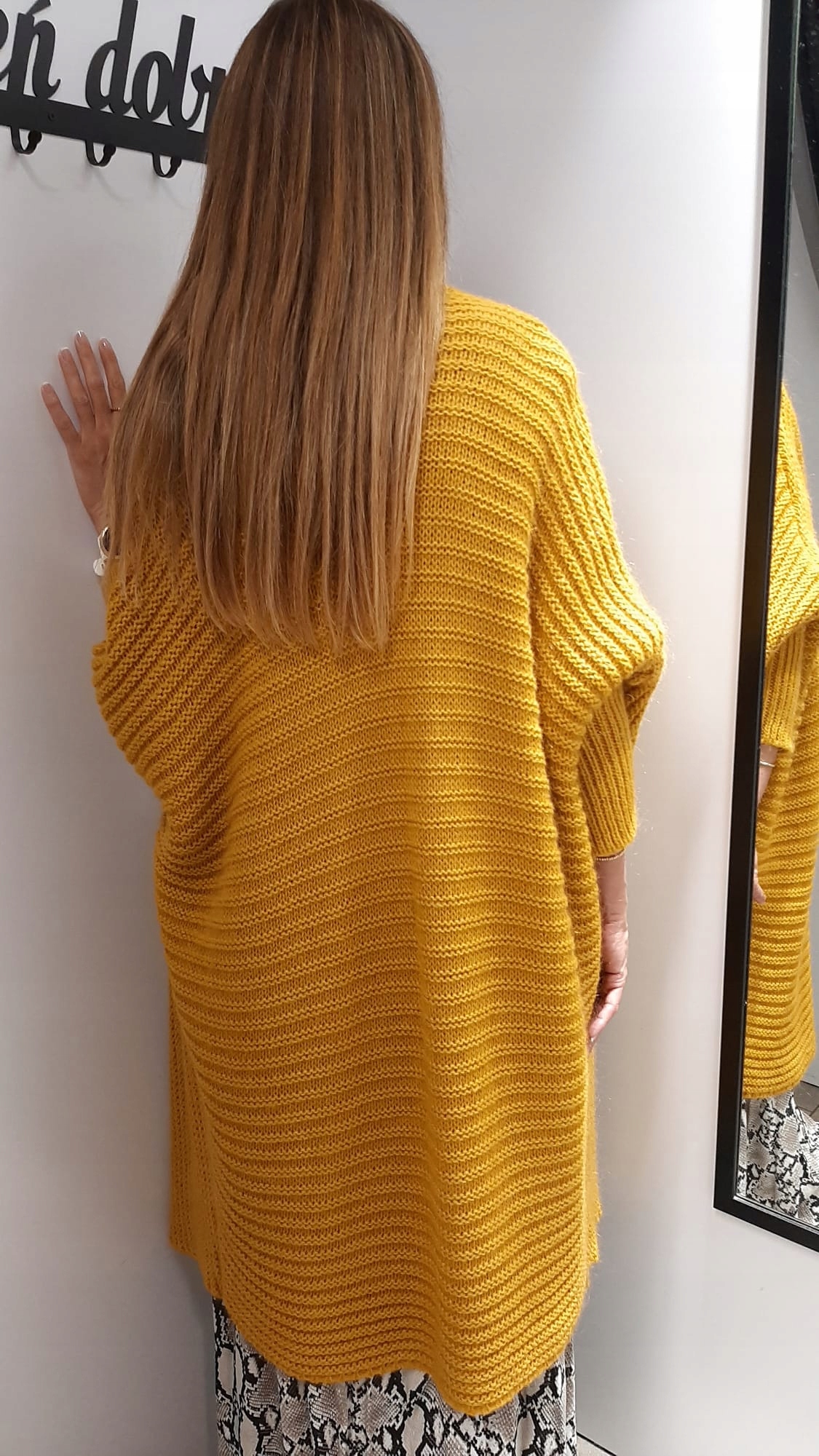 - Oryginalny, luźny kardigan, wykonany z przędzy o luźnym kroju. Przepięknie wygląda na każdej sylwetce i stanowi niebanalne uzupełnienie zarówno eleganckich, jak i sportowych stylizacji. Alternatywa dla płaszcza.
