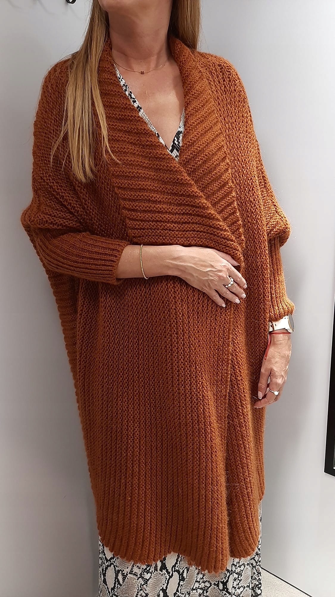 COCOMORE Sweter Płaszcz Kardigan Kasztanowy