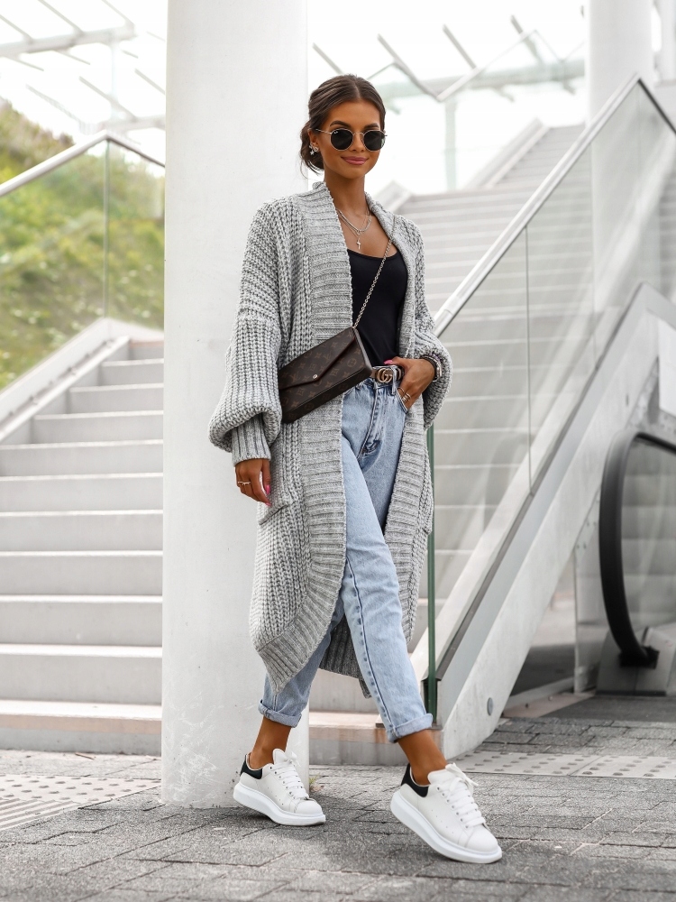 COCOMORE Sweter Płaszcz Kardigan Szary Nowość