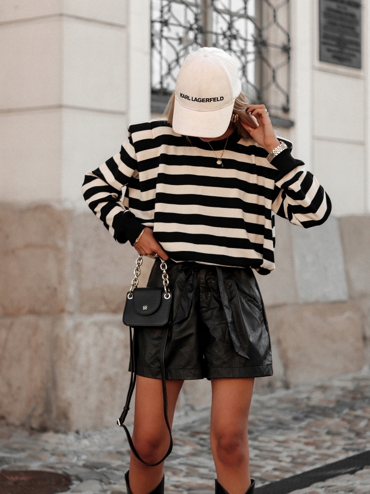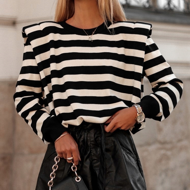 - Fantastyczny sweter z ozdobnymi poduszkami. Na dole gumka do regulacji ściągacza