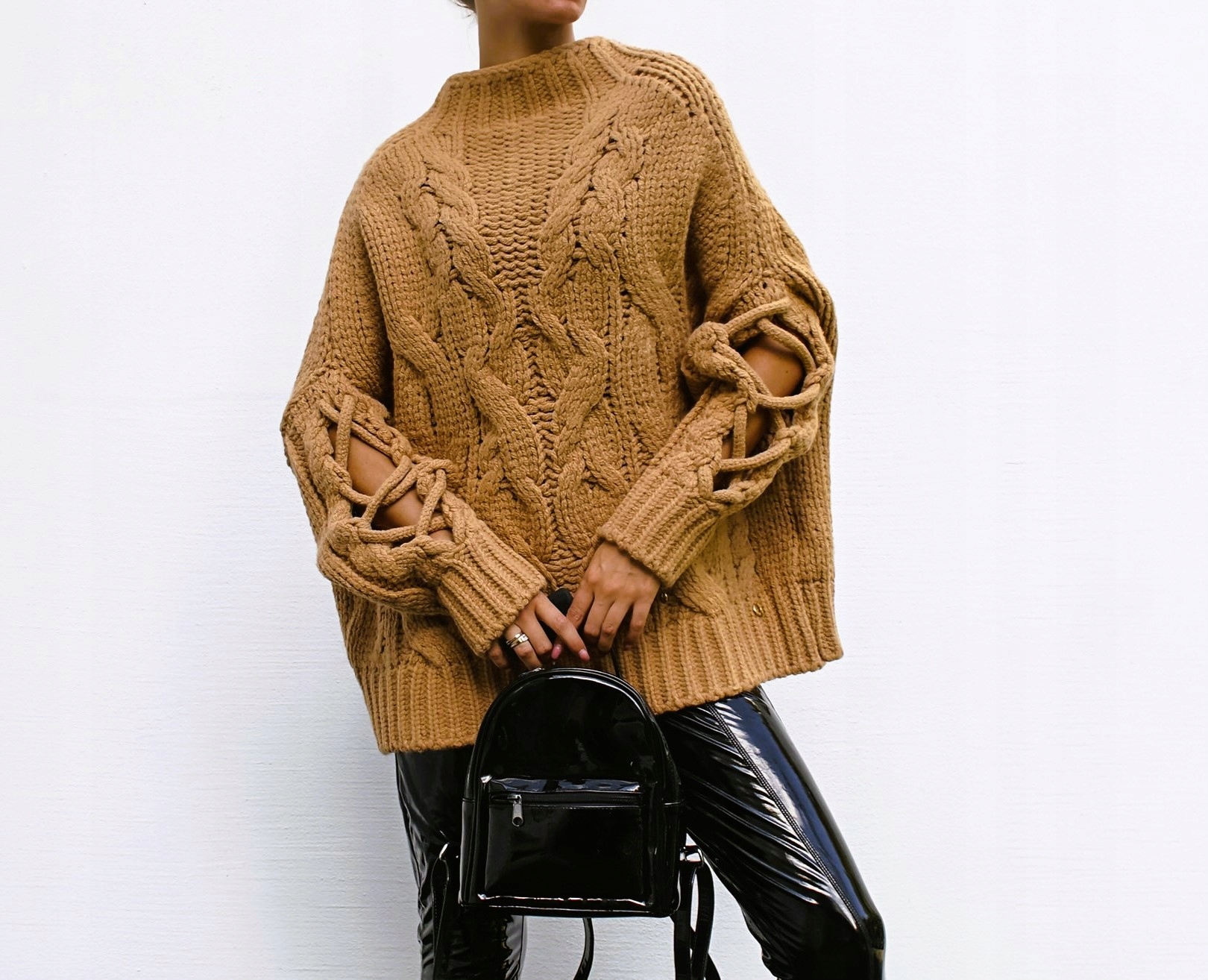 - Ten zjawiskowy sweterek w to idealna propozycja na chłodne dni. Delikatny półgolf zapewnia komfort i wygodę. Dodatkowym atutem są wiązania na rękawach.