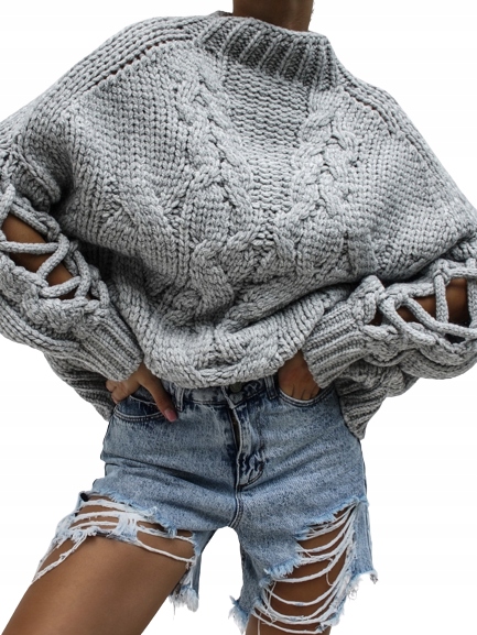 - Ten zjawiskowy sweterek w to idealna propozycja na chłodne dni. Delikatny półgolf zapewnia komfort i wygodę. Dodatkowym atutem są wiązania na rękawach.