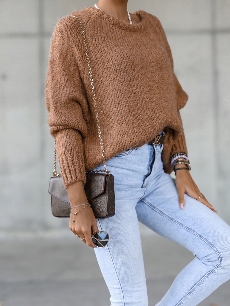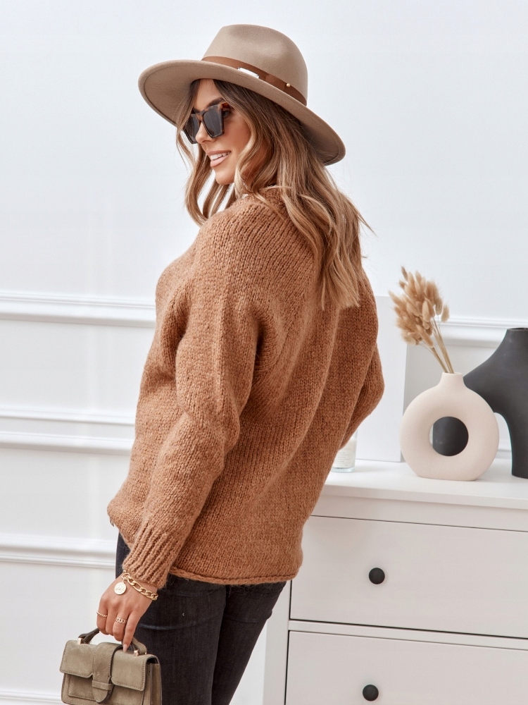 COCOMORE Sweter Rulon Brązowy Camelowy