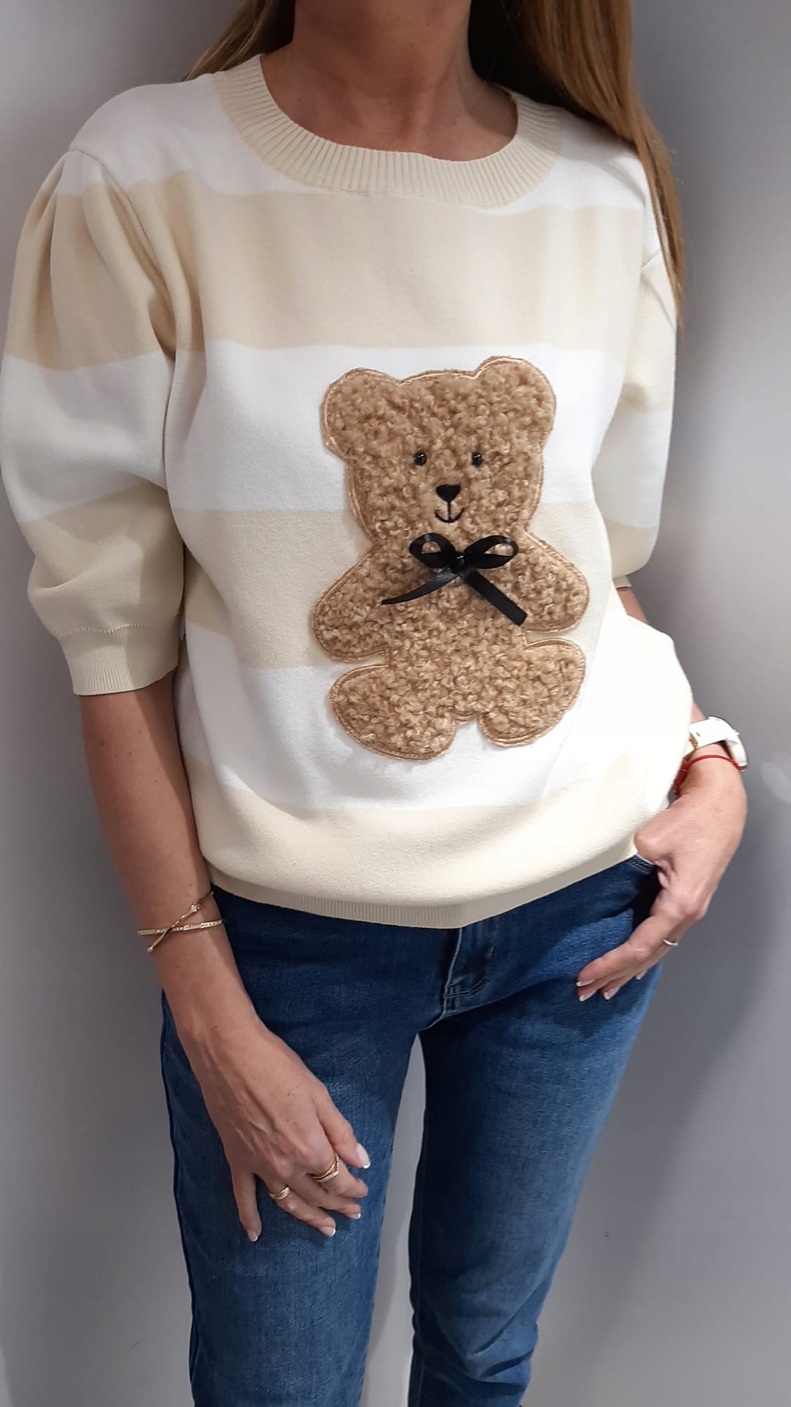 COCOMORE Sweter w Pasy MIŚ Bear Beżowy + Biały + Camel Nowość