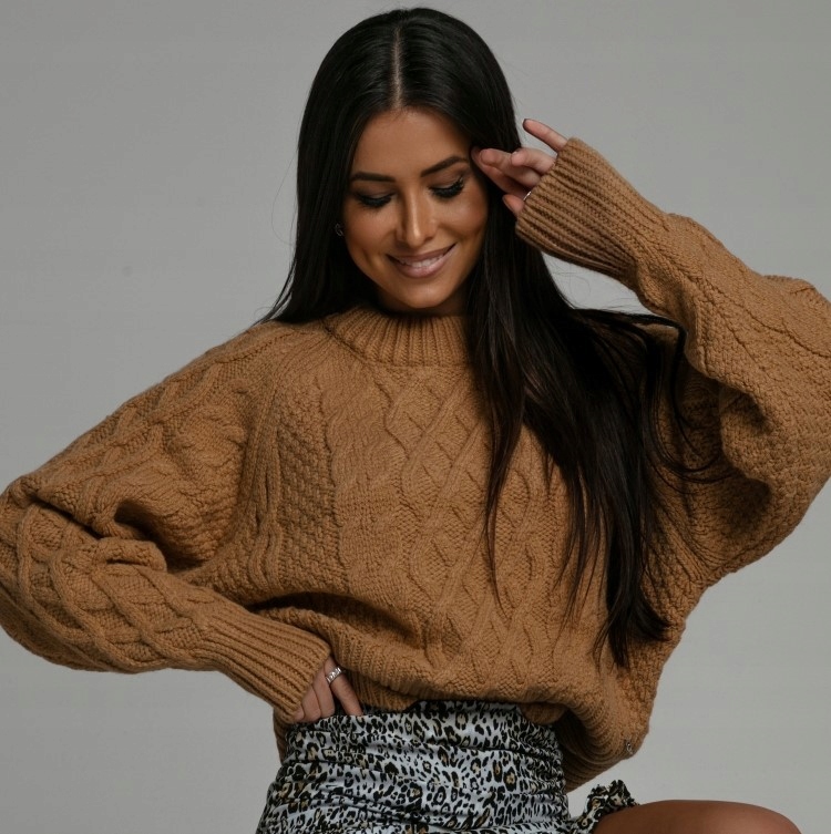 COCOMORE Sweter Warkocz Karmelowy NEW