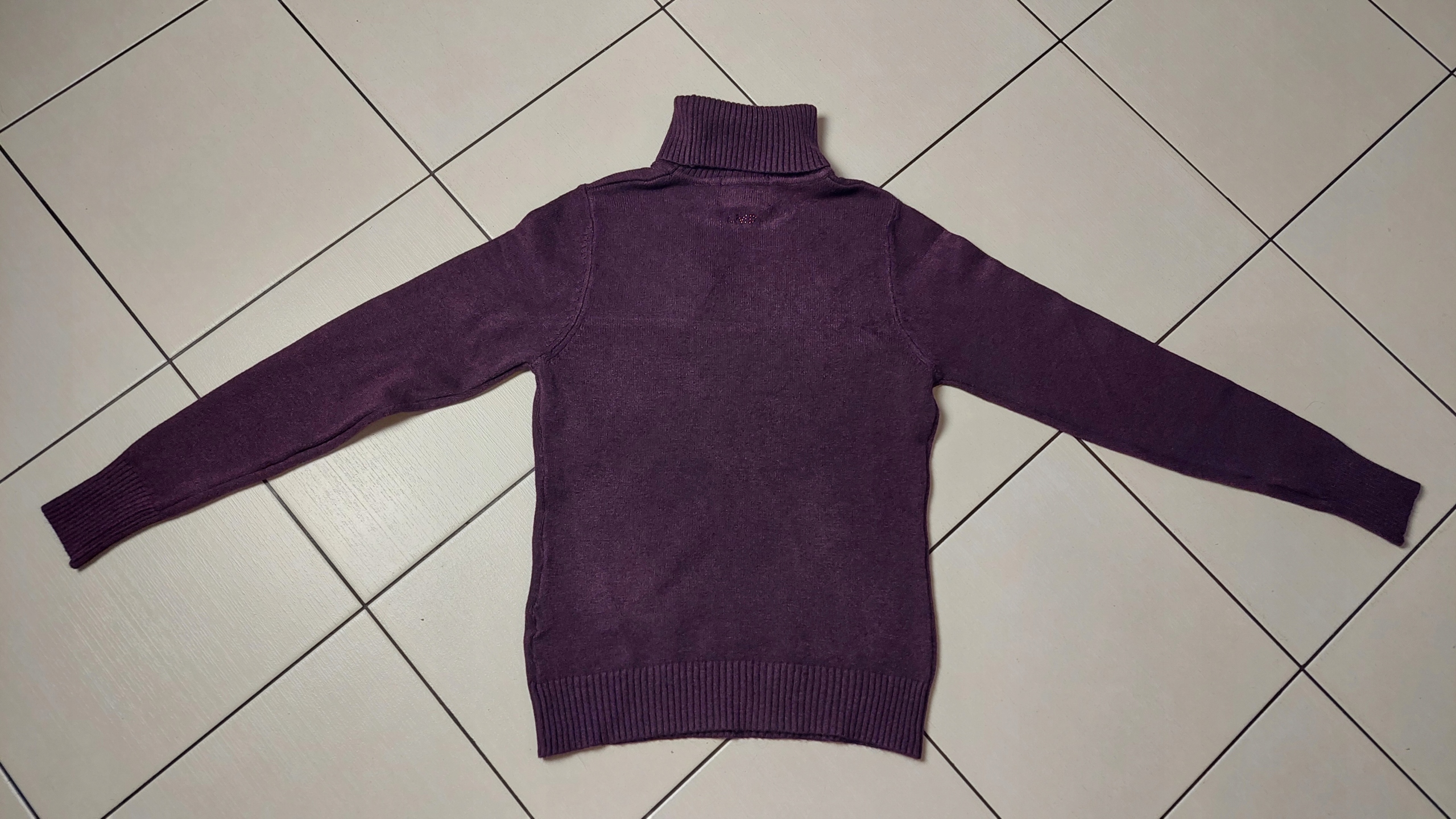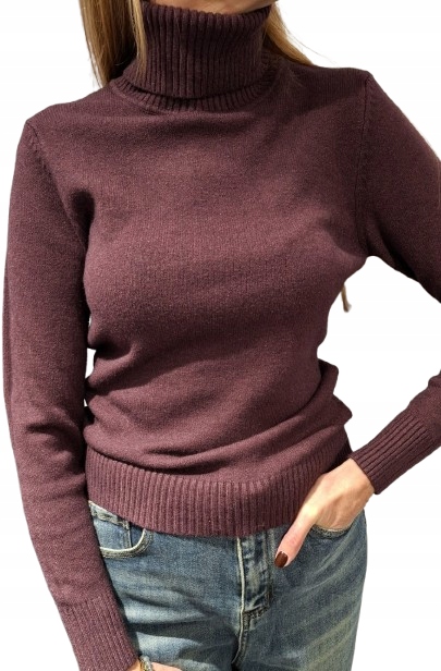 - Ponadczasowy sweter z golfem. Wykonany z wysokiej jakości, elastycznego materiału. Miły i miękki w dotyku. Na plecach delikatne logo producenta