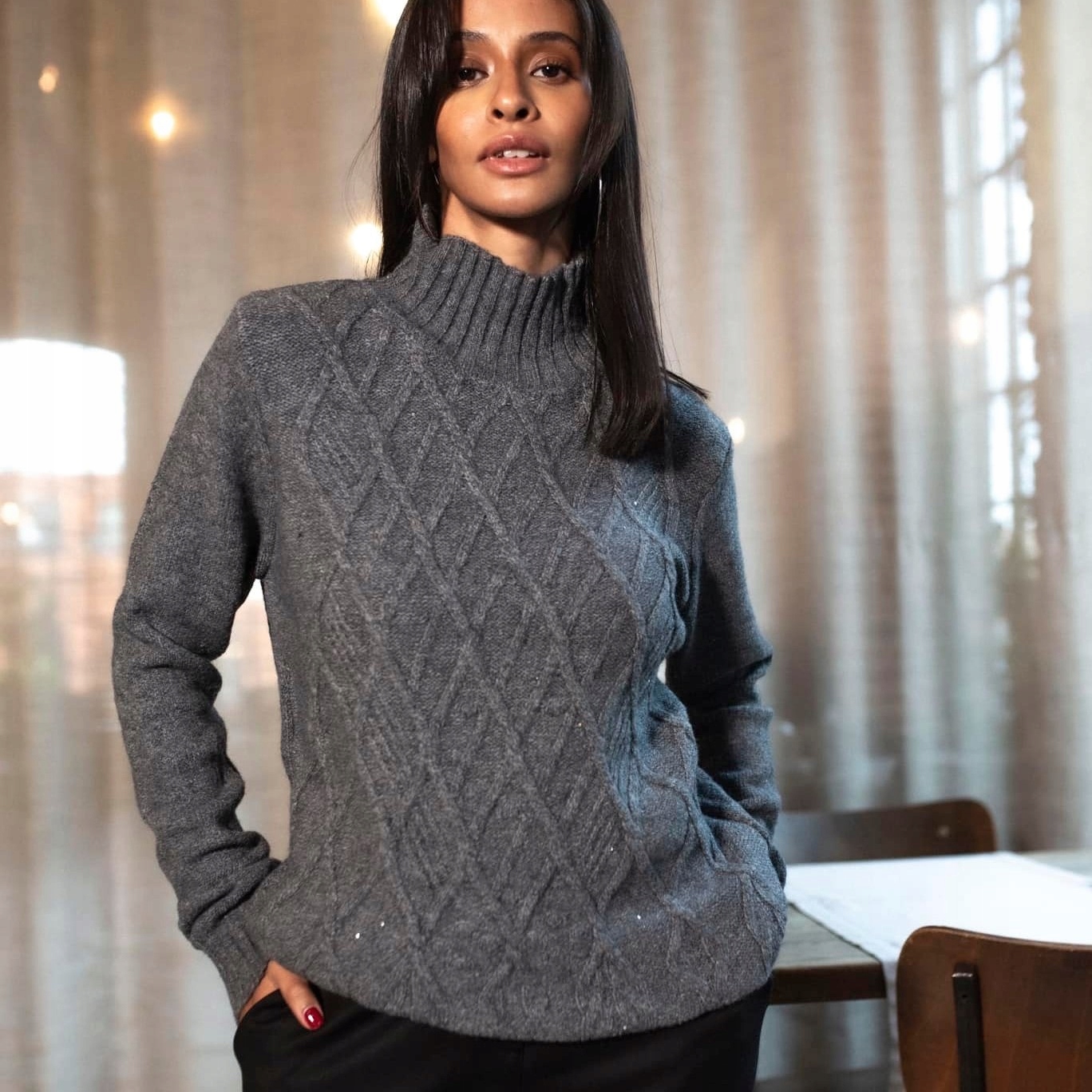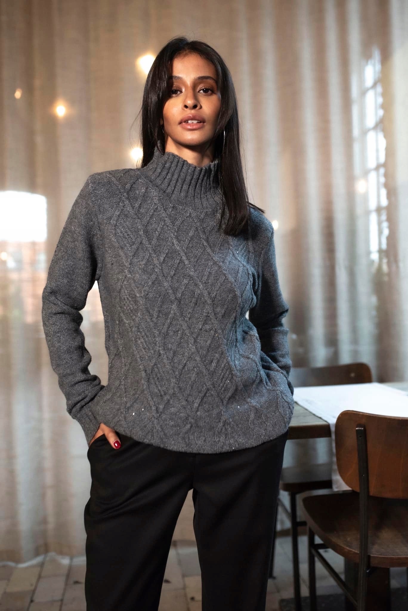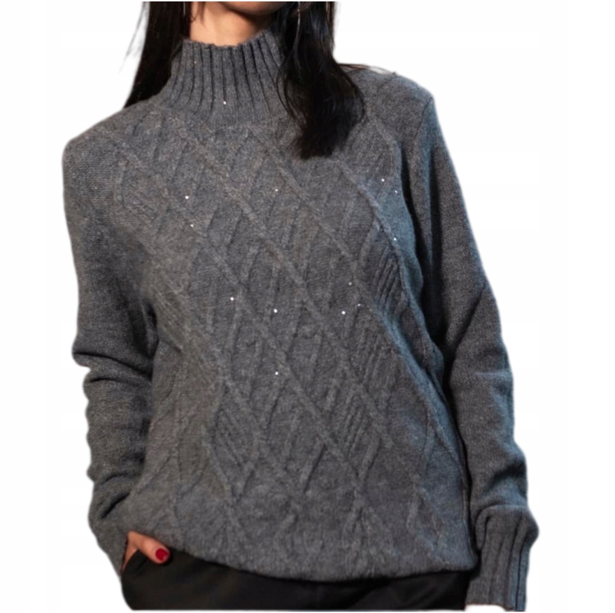 LEMONADA Sweter Półgolf Cekiny Wzór Szary Nowość