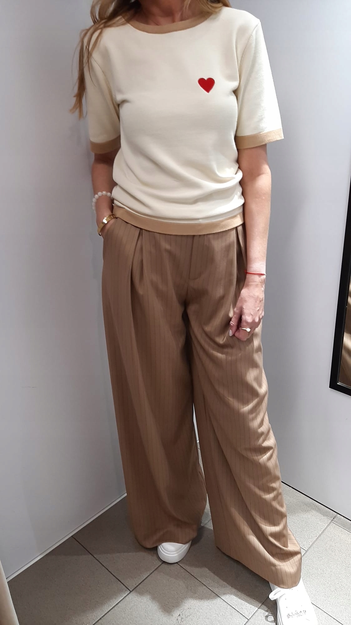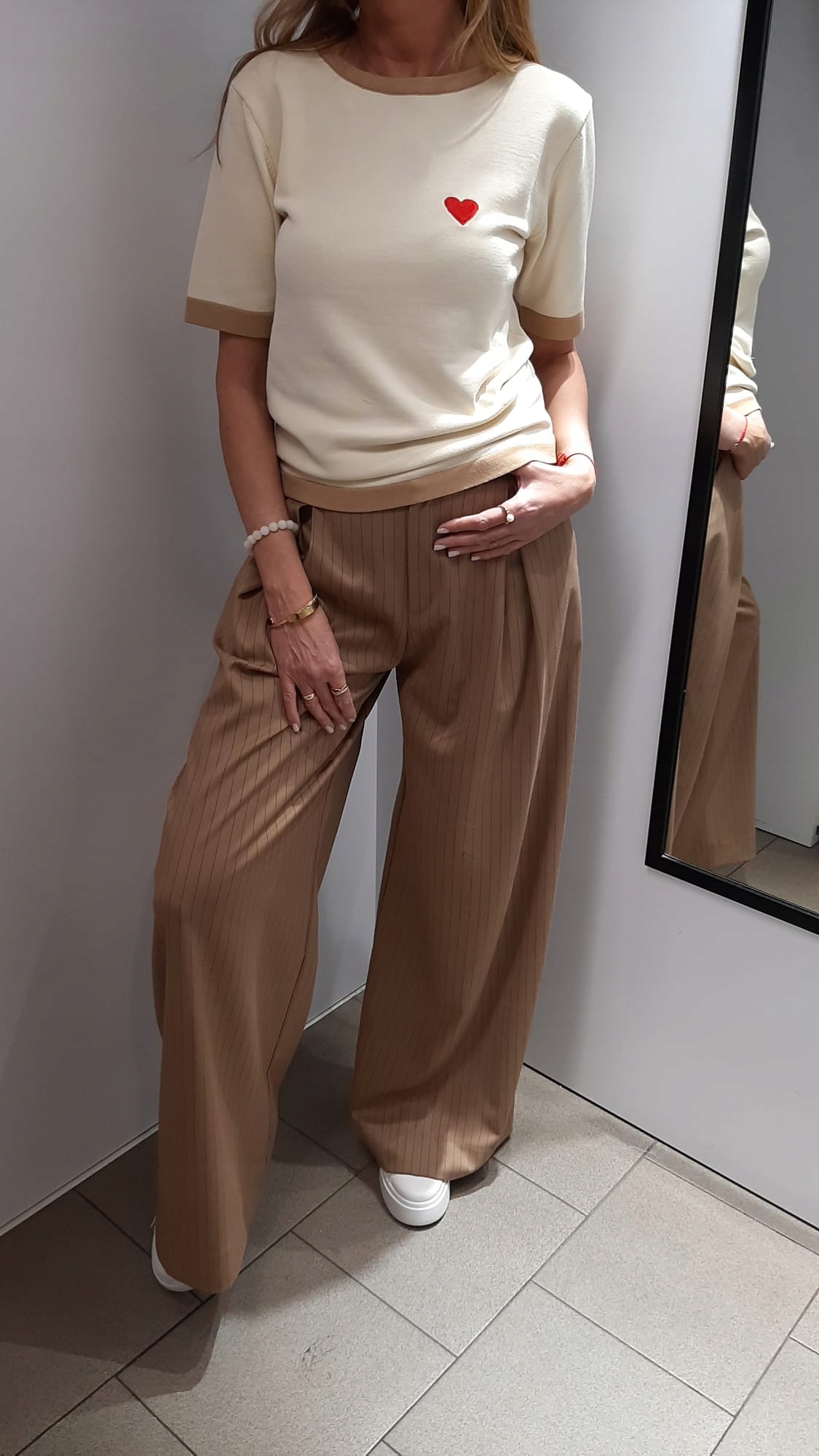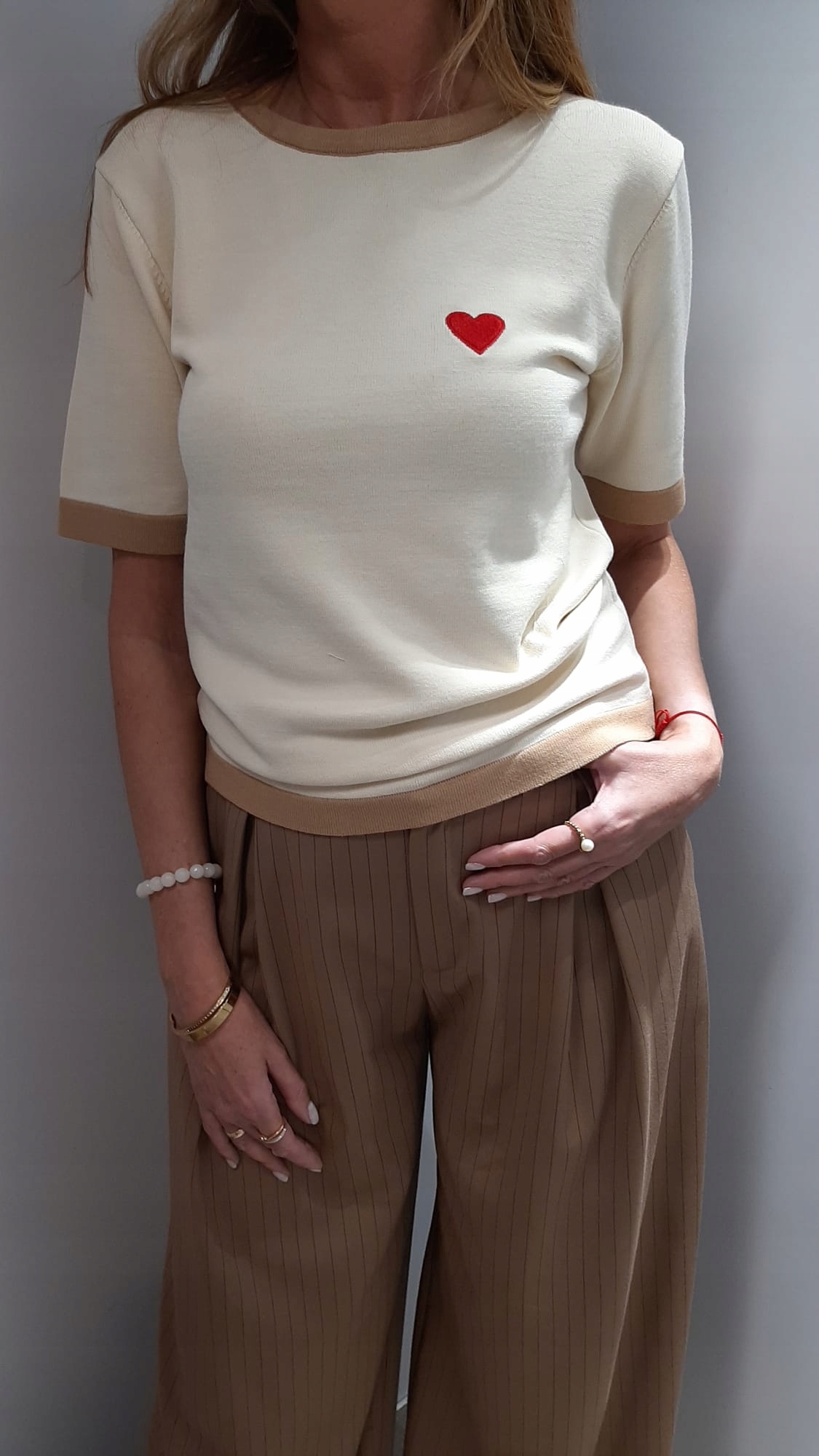 YARN Premium Sweterek Bluzka Beżowy + Camelowy Serduszko Nowość
