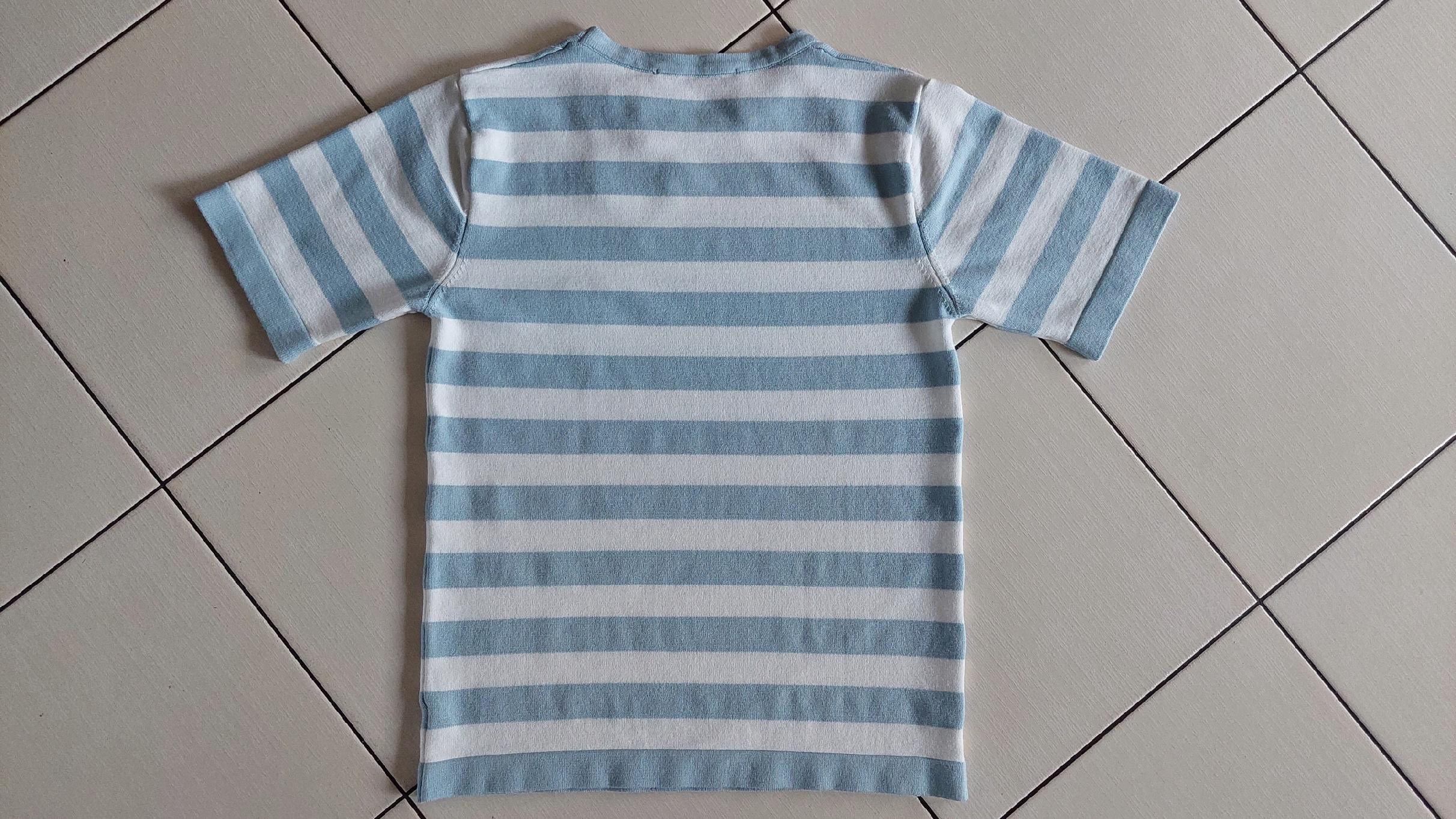 YARN Premium Sweterek Bluzka w Pasy Błękitny Jeans + Biały Serduszko Nowość