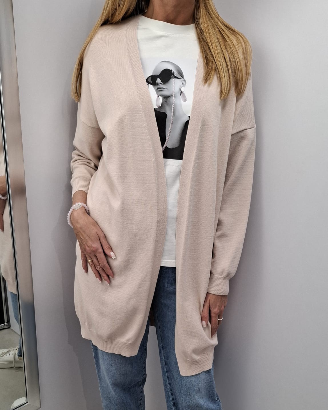 - Rewelacyjny kardigan. Wykonany z wysokiej jakości materiału. Z pewnością sprawdzi się wielu stylizacjach. Możliwość skompletowania z bluzkami lub ze spodniami z tej samej dzianiny