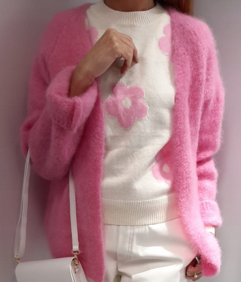 YARN Sweter Kardigan Premium MOHER Krótki Różowy NEW