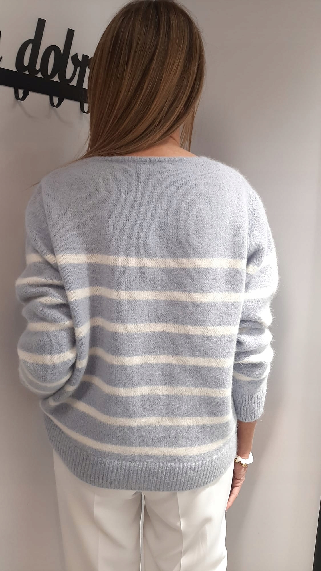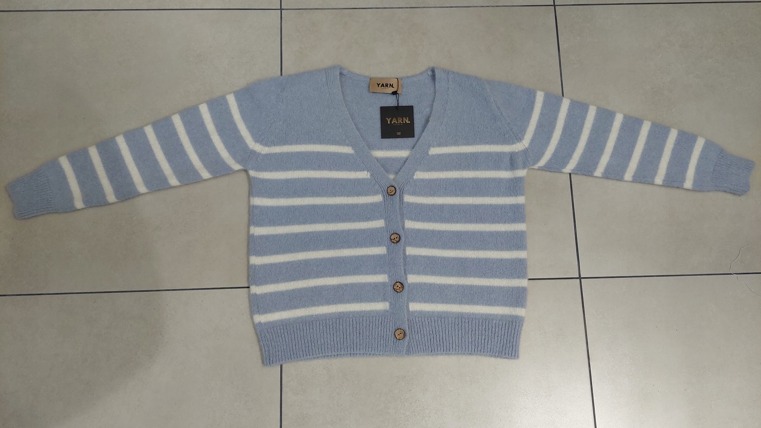 YARN Sweter Kardigan w Paski Alpaka + Wełna Błękitny + Biały Nowość