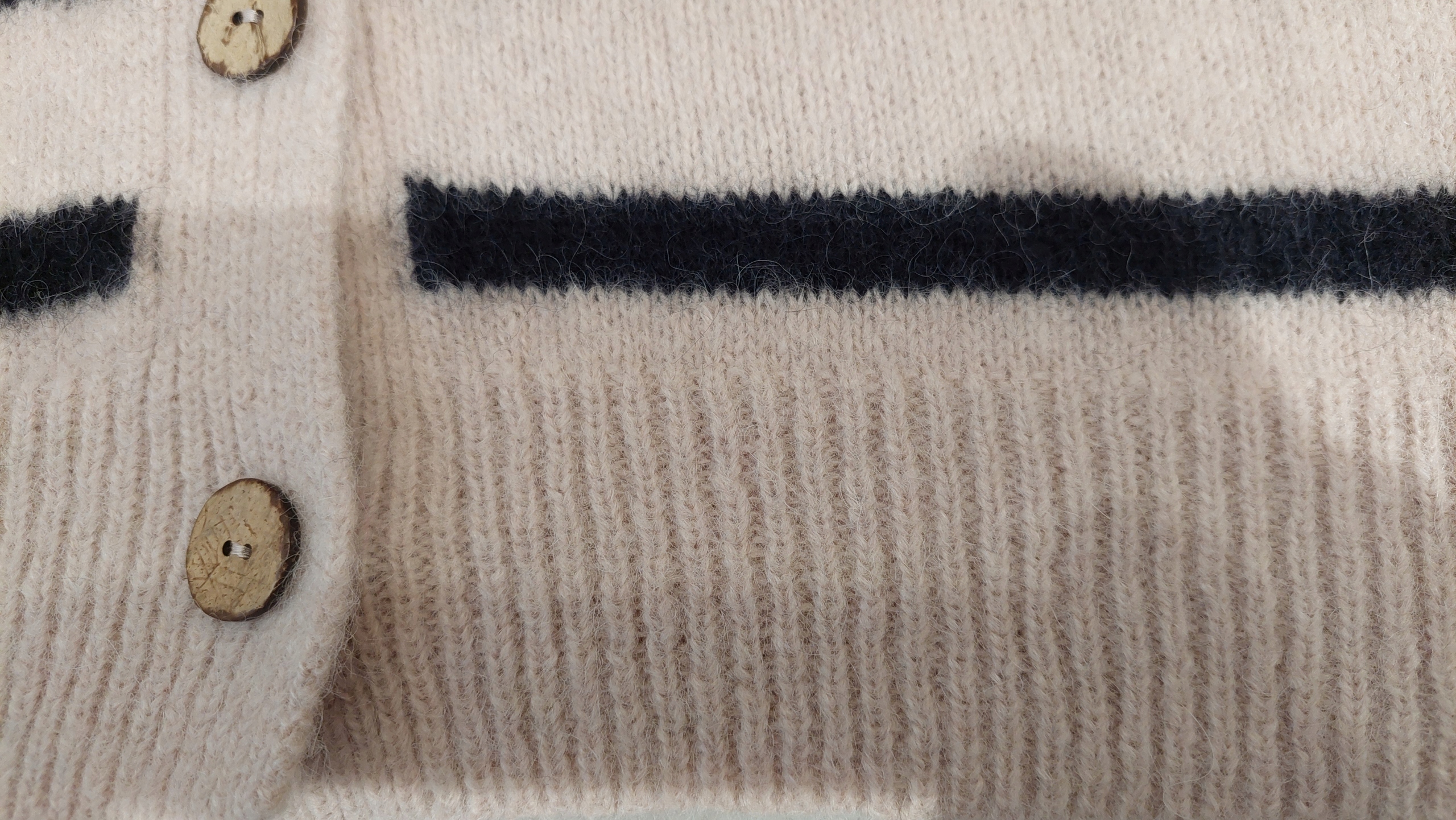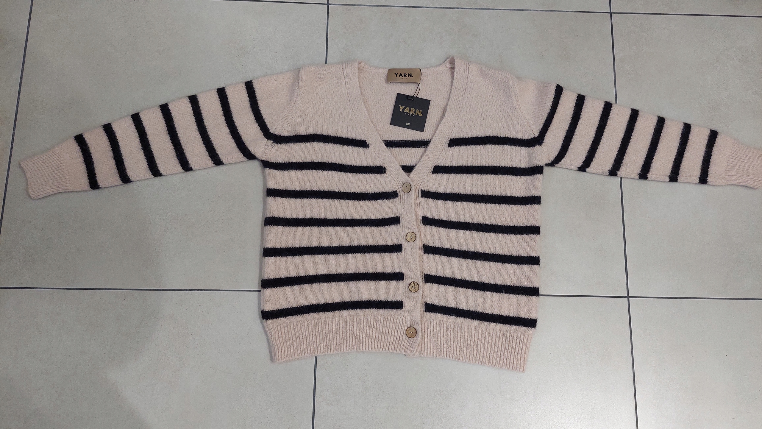 YARN Sweter Kardigan w Paski Alpaka + Wełna Pudrowy + Czarny Nowość