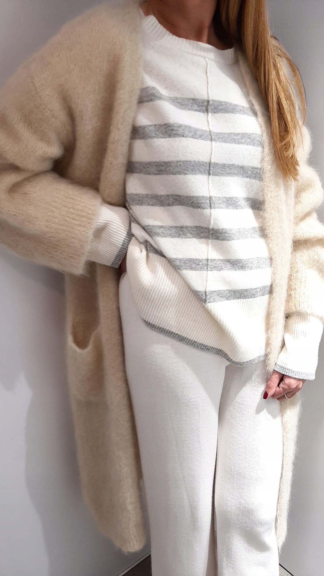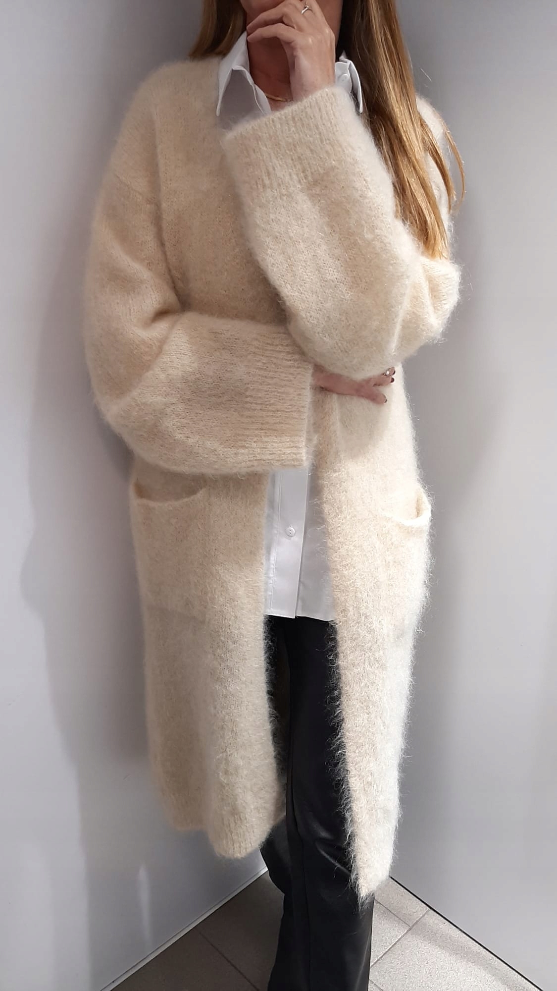 - Wyjątkowy, oversize’owy długi kardigan. Wykonany z miękkiej i miłej przędzy premium.