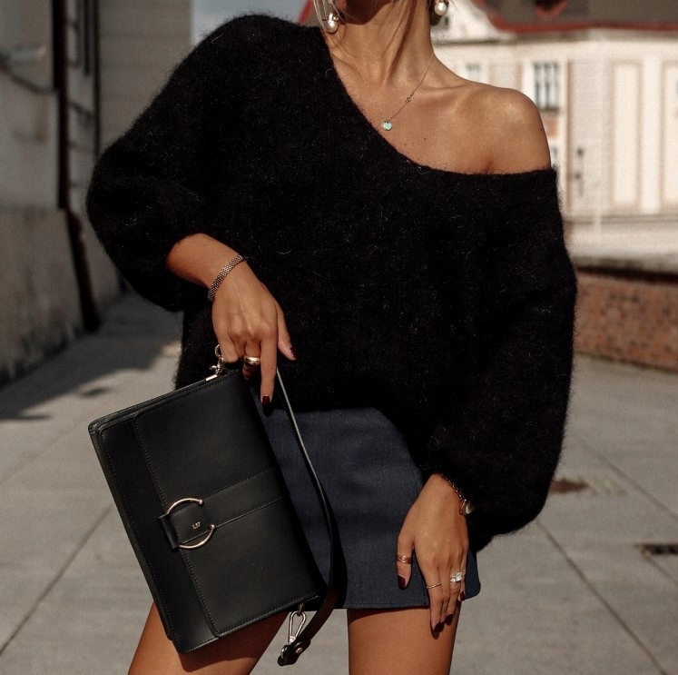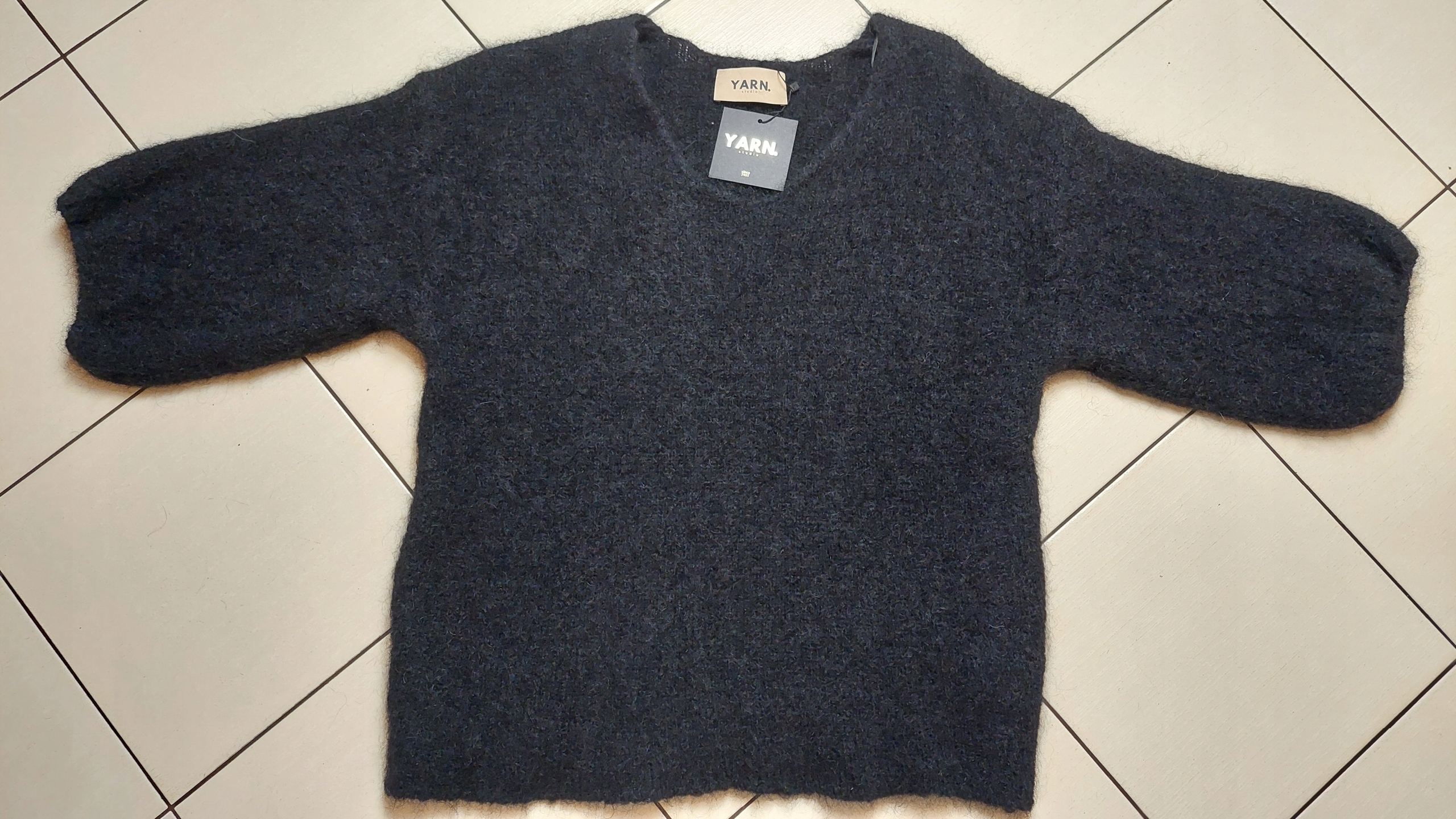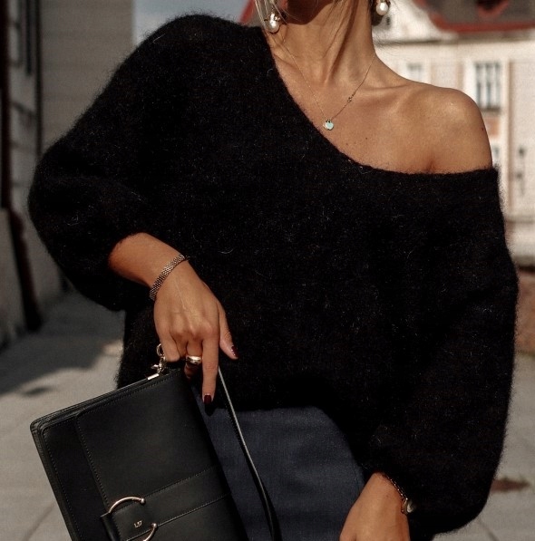 YARN Sweter z Wełny Premium SUPER KID MOHER Czarny V Nowość
