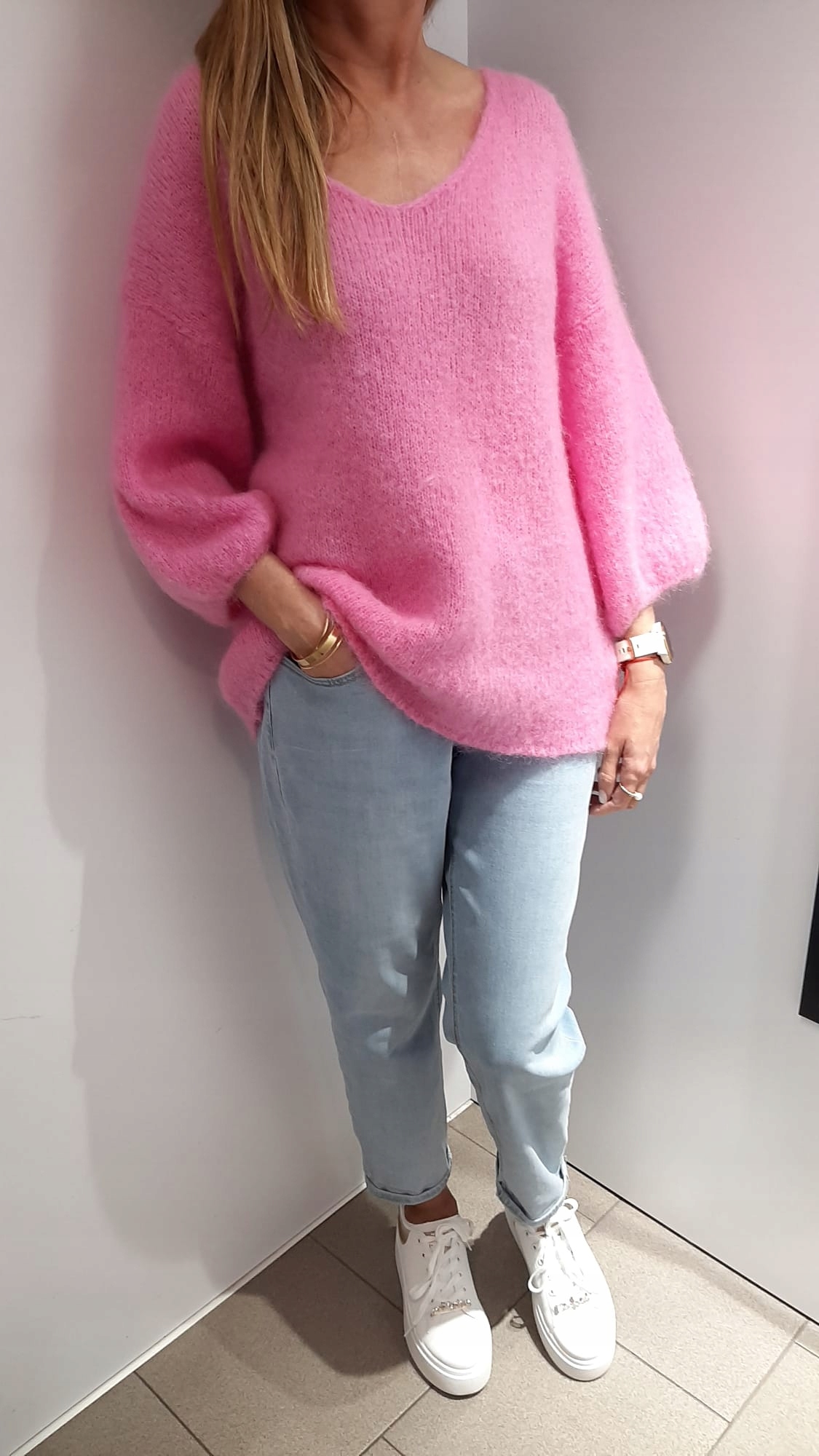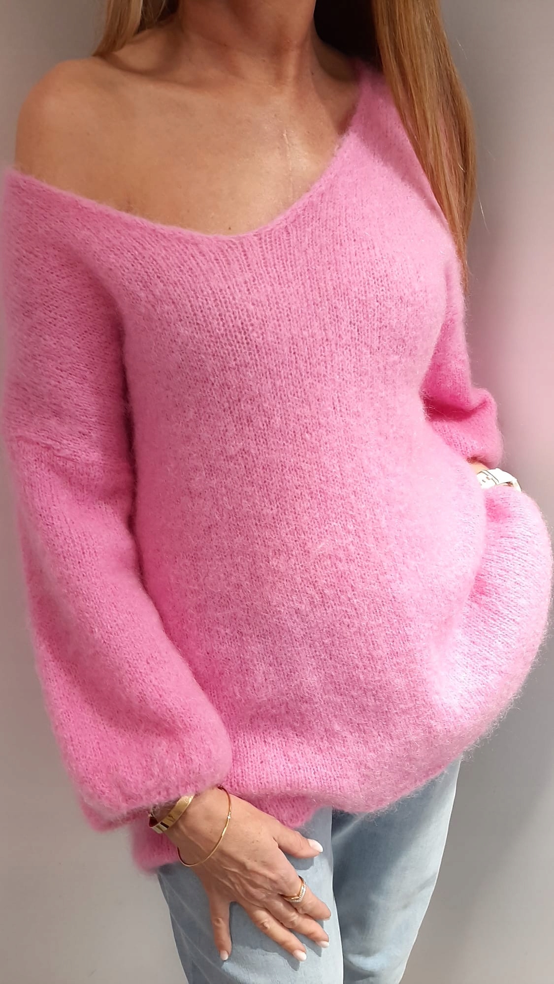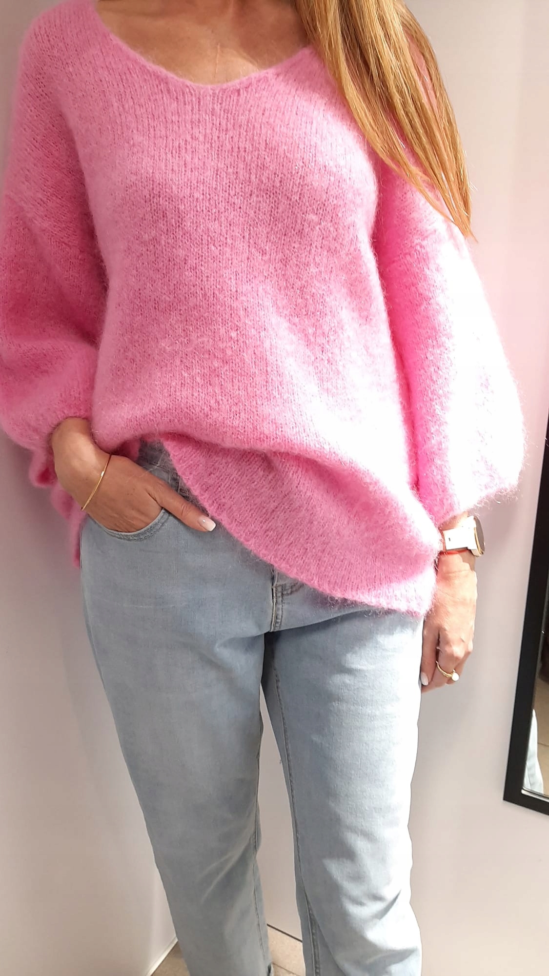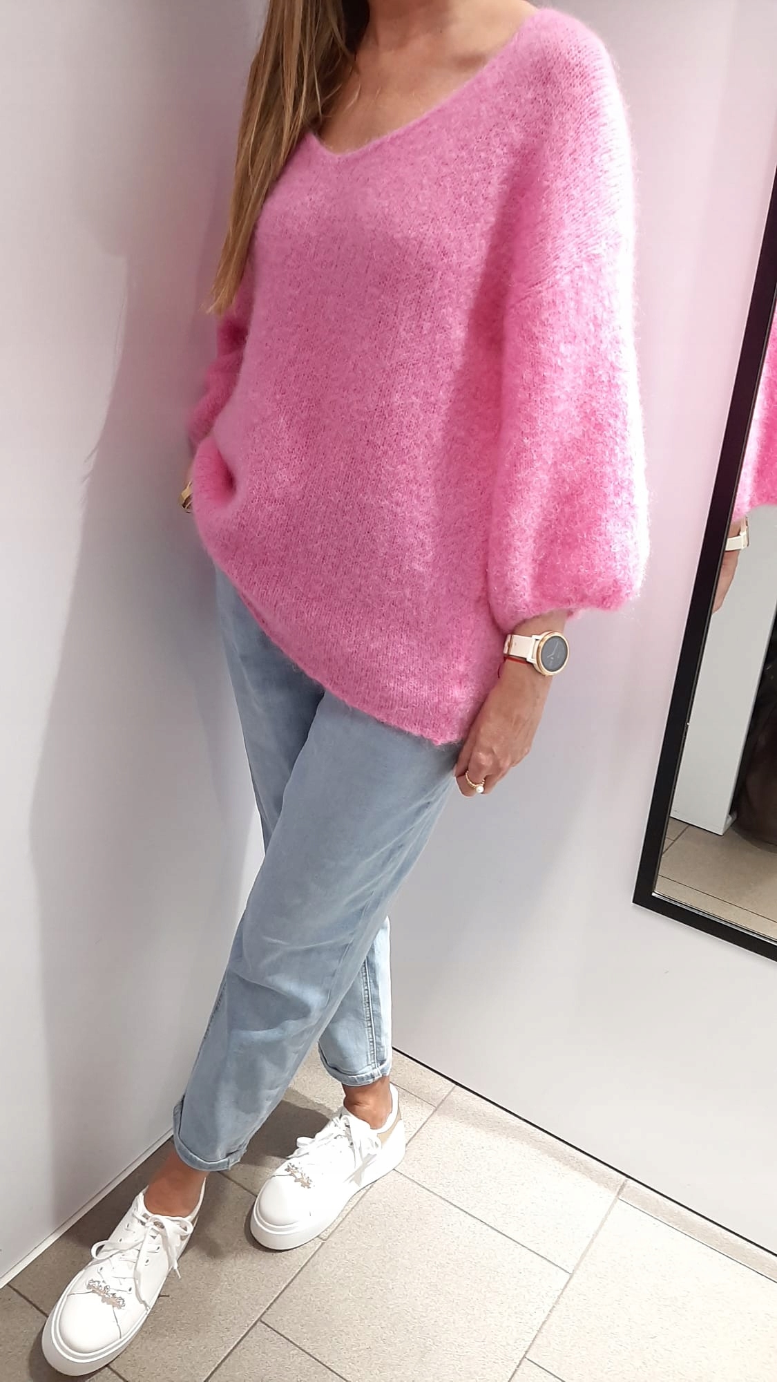 YARN Sweter z Wełny Premium SUPER KID MOHER Różowy V Nowość