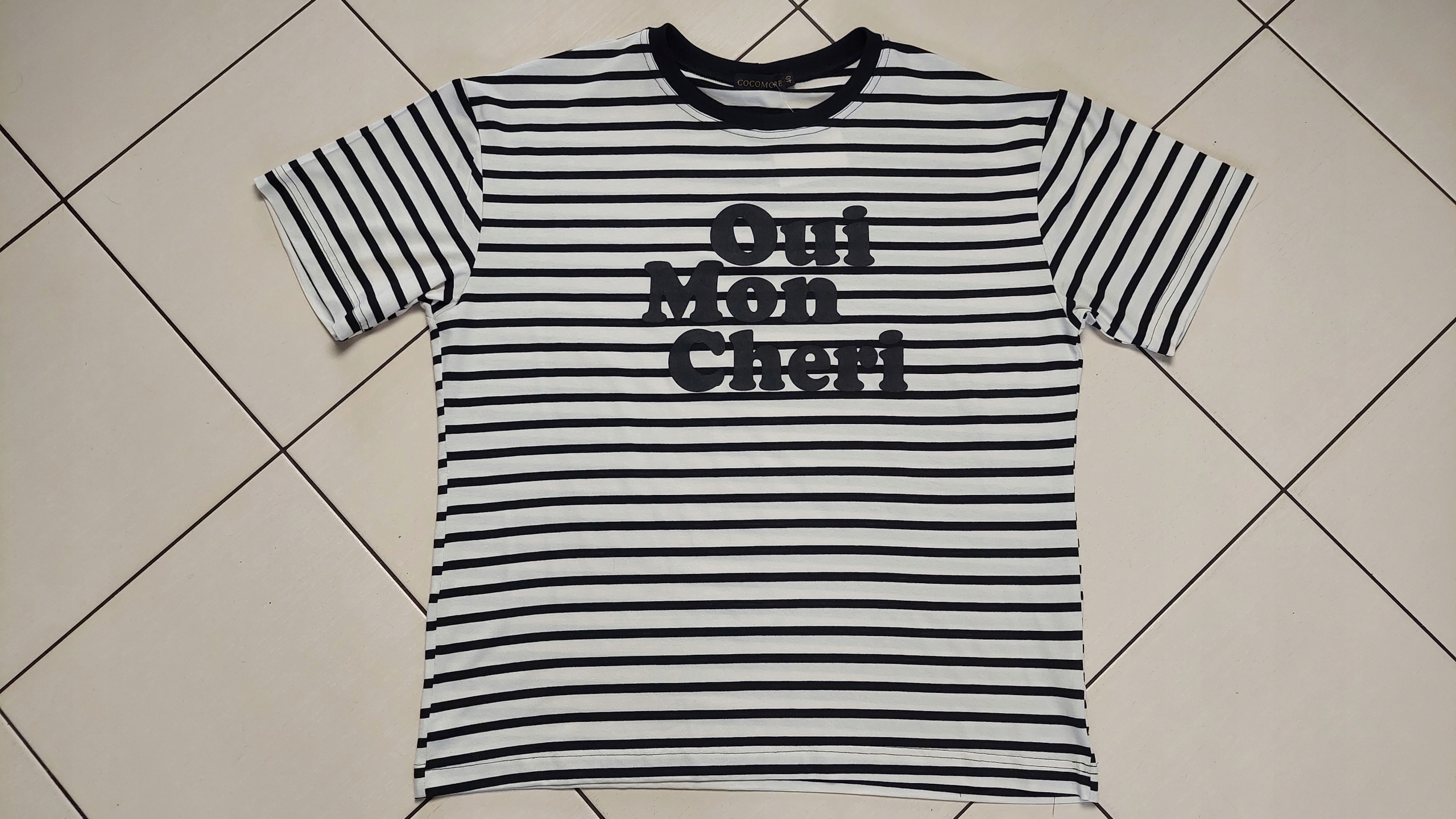 COCOMORE T-shirt Bluzka w Paski z Nadrukiem Czarny + Biały 38/M Nowość