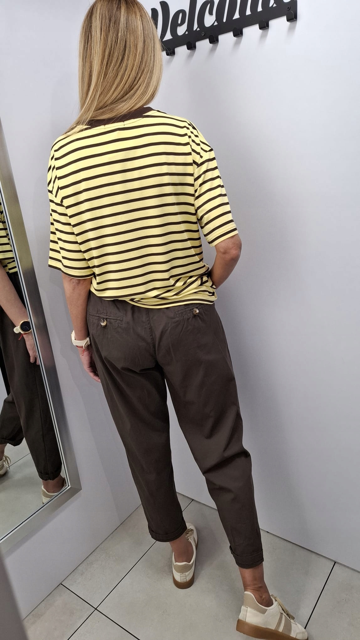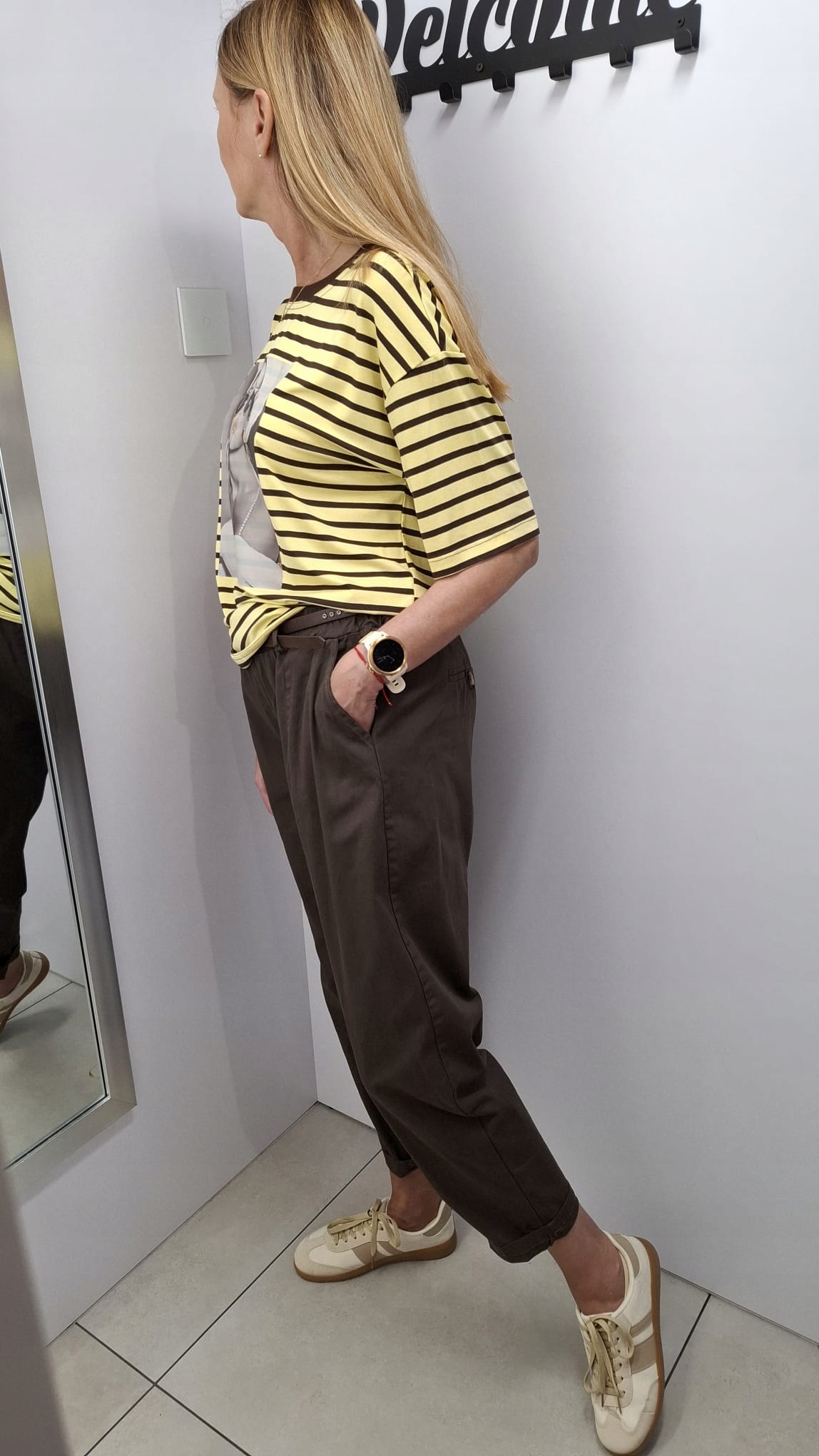 COCOMORE T-shirt Bluzka w Paski z Nadrukiem Żółty + Brązowy 40/L Nowość
