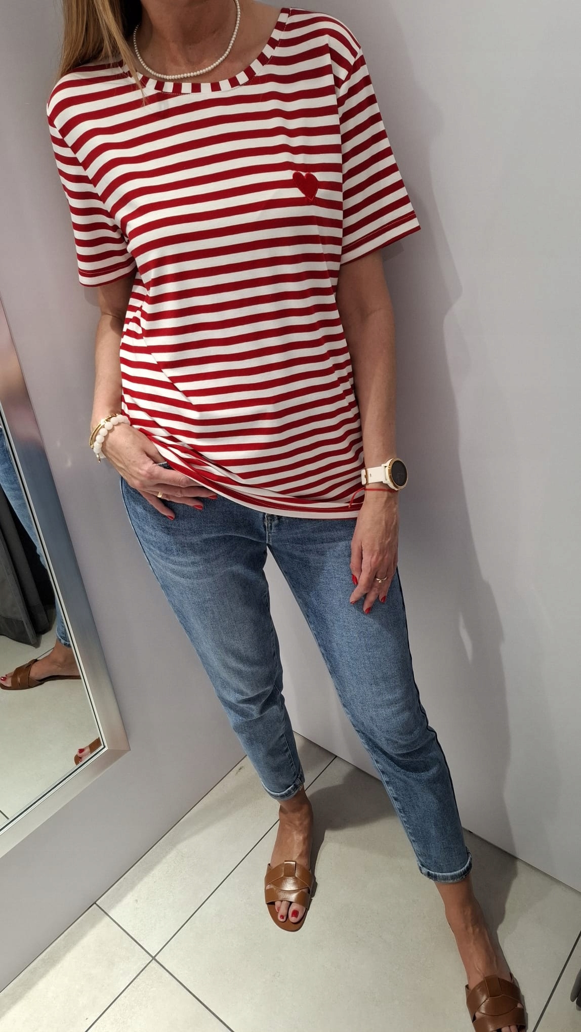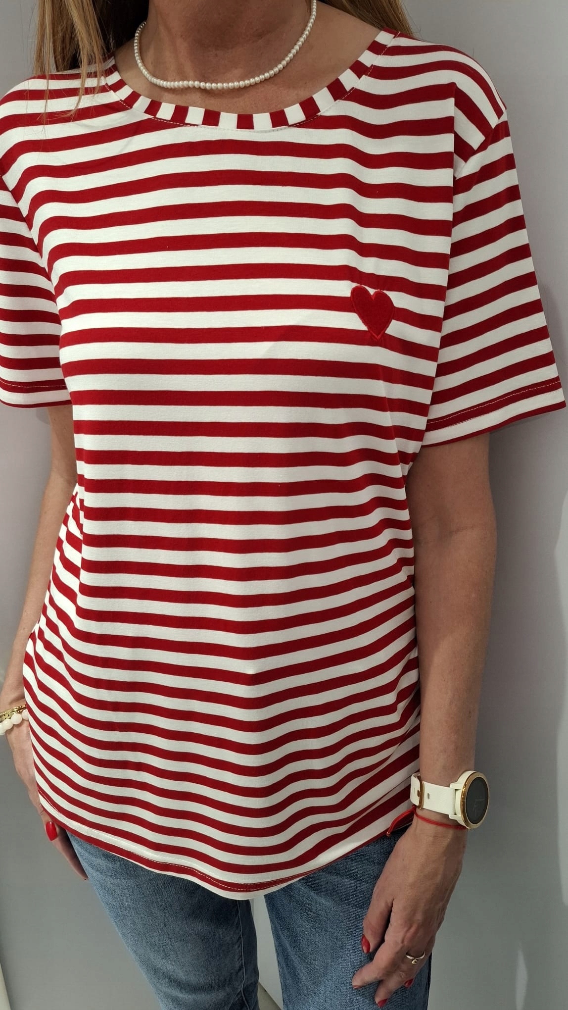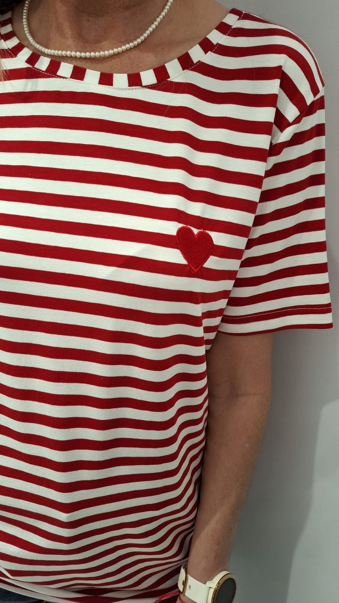 COCOMORE T- shirt Bluzka w Paski z Sercem Biały + Czerwony 38/M NEW