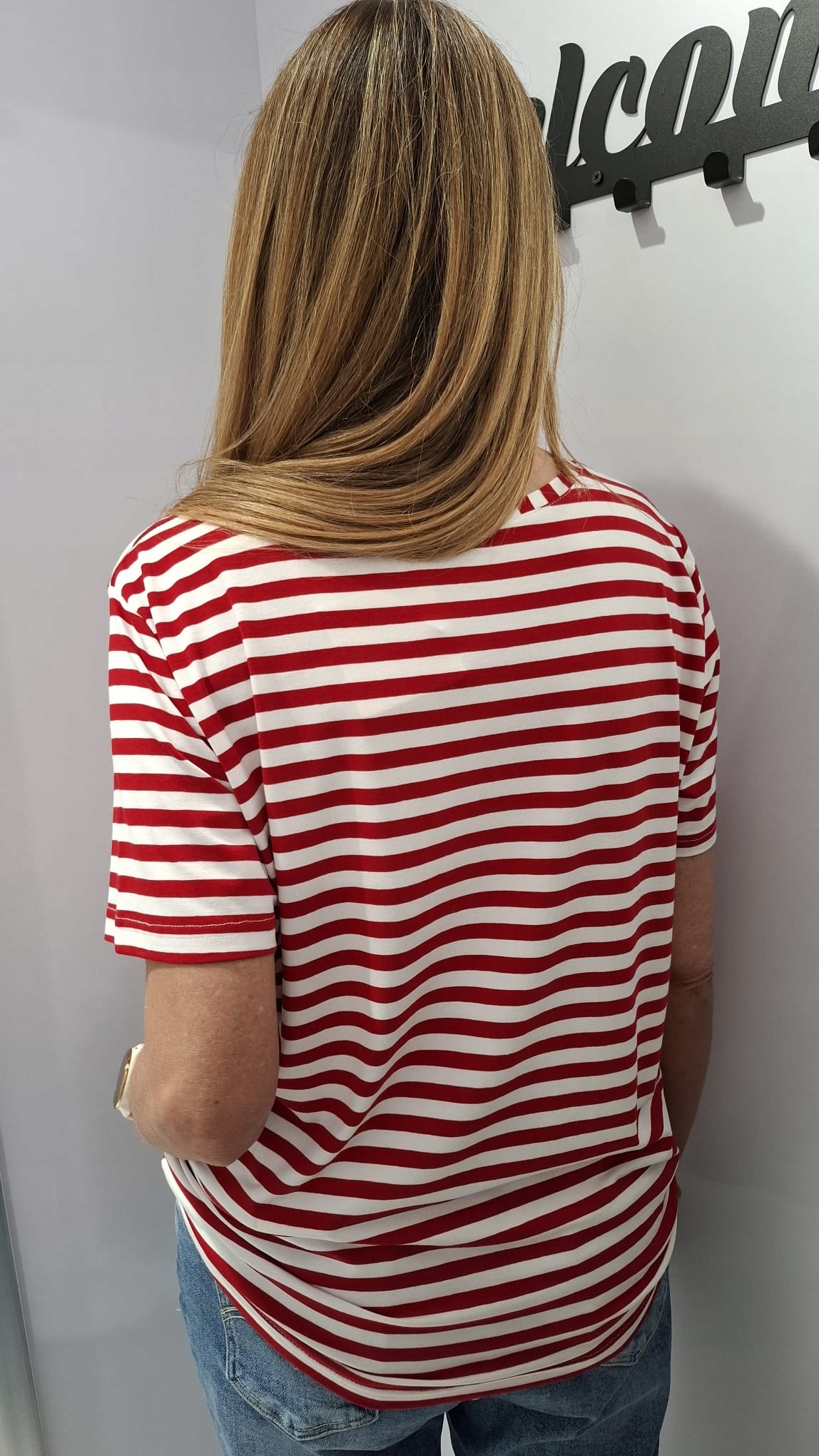 - Wyjątkowa bluzka w wąskie paski, wykonana z wysokiej jakości materiału. Miła i miękka w dotyku. Na przodzie znajduje się haft w kształcie serca.