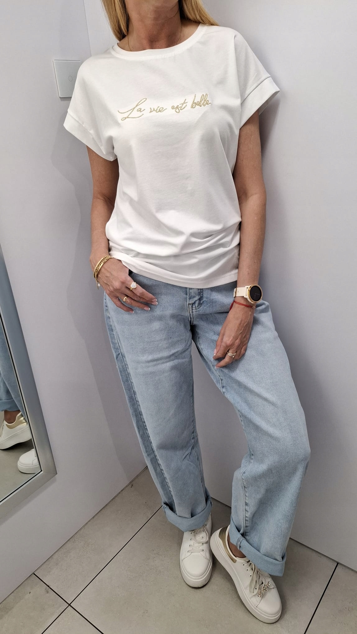 COCOMORE T-shirt Bluzka z Haftem Biały + Złoty 36/S NEW