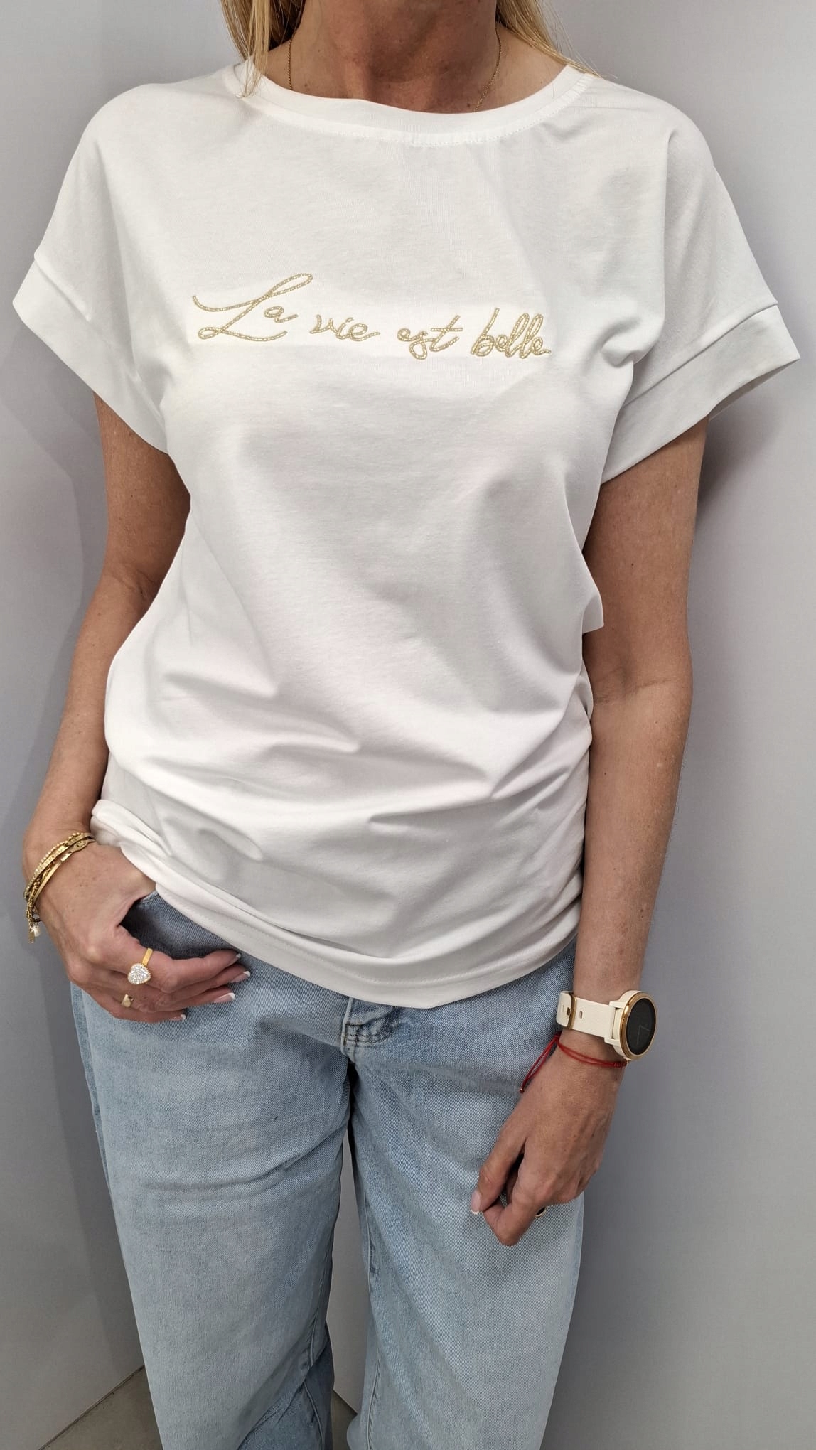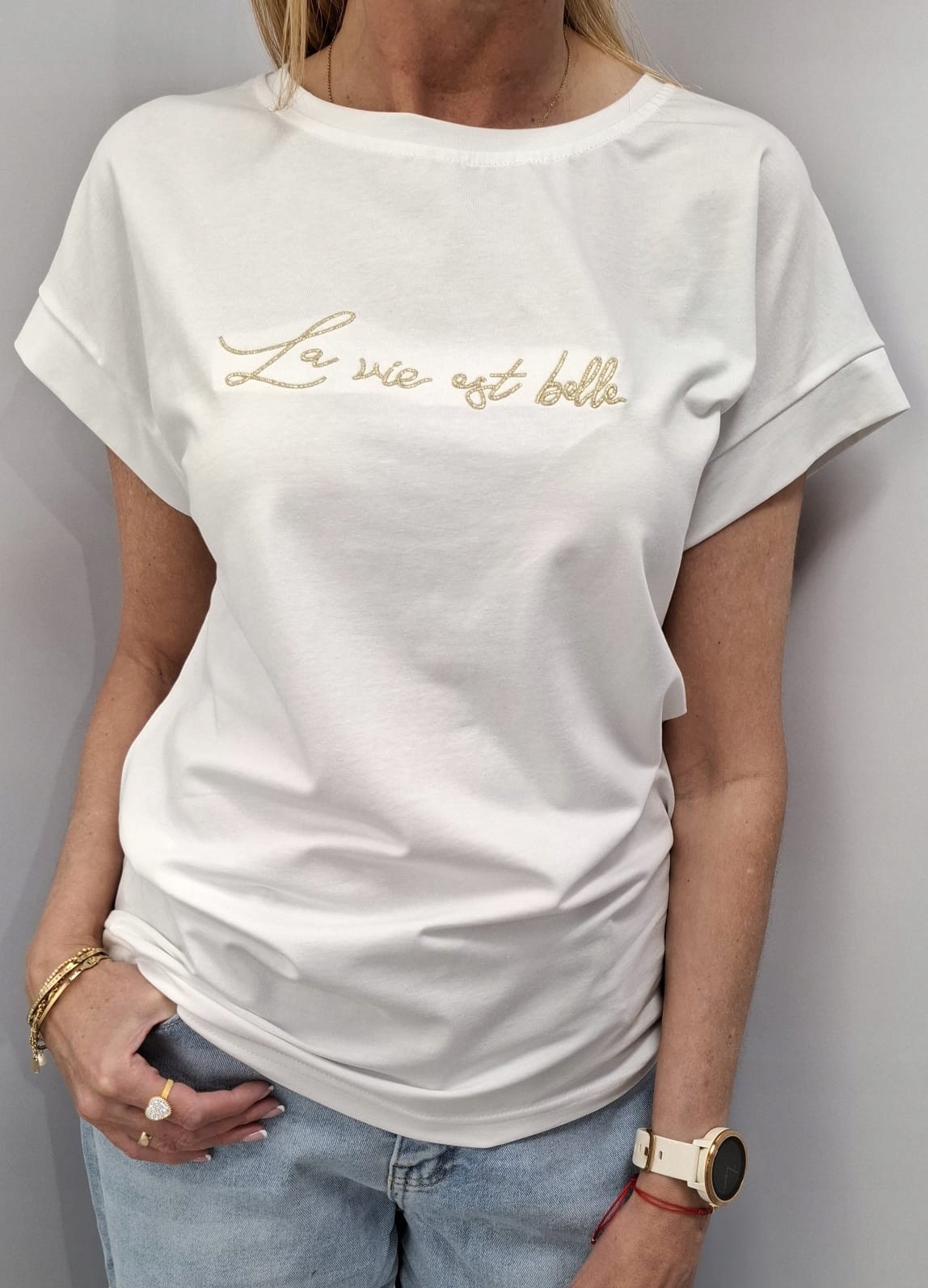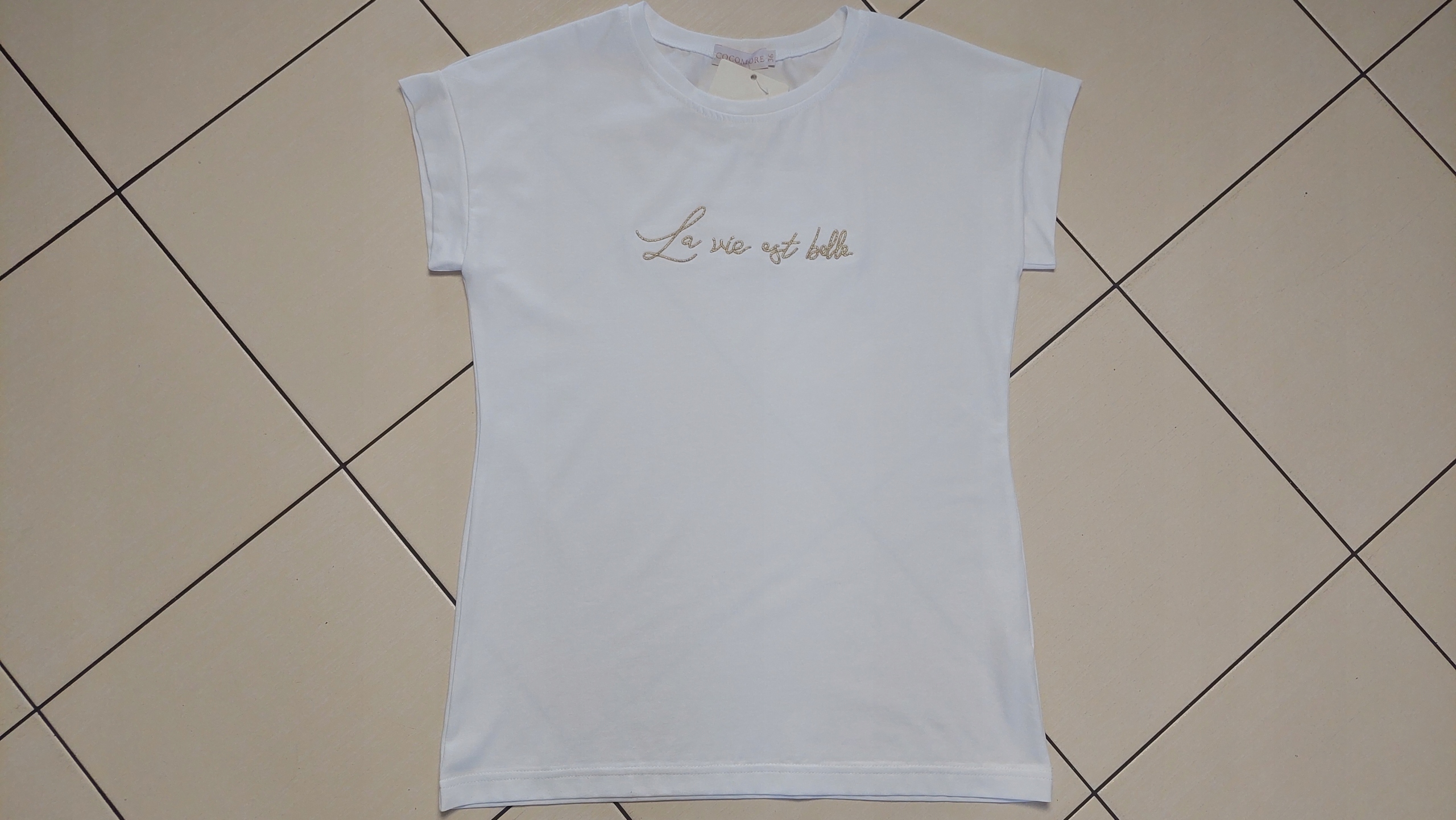 COCOMORE T-shirt Bluzka z Haftem Biały + Złoty 38/M NEW