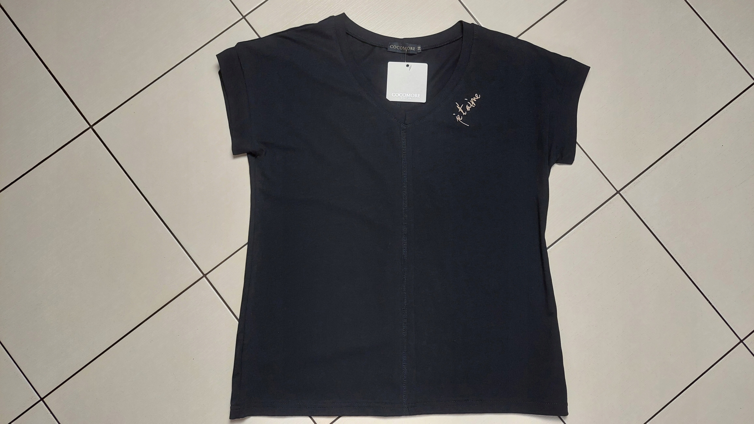 COCOMORE T-shirt Bluzka z Haftem Czarna 40/L NEW