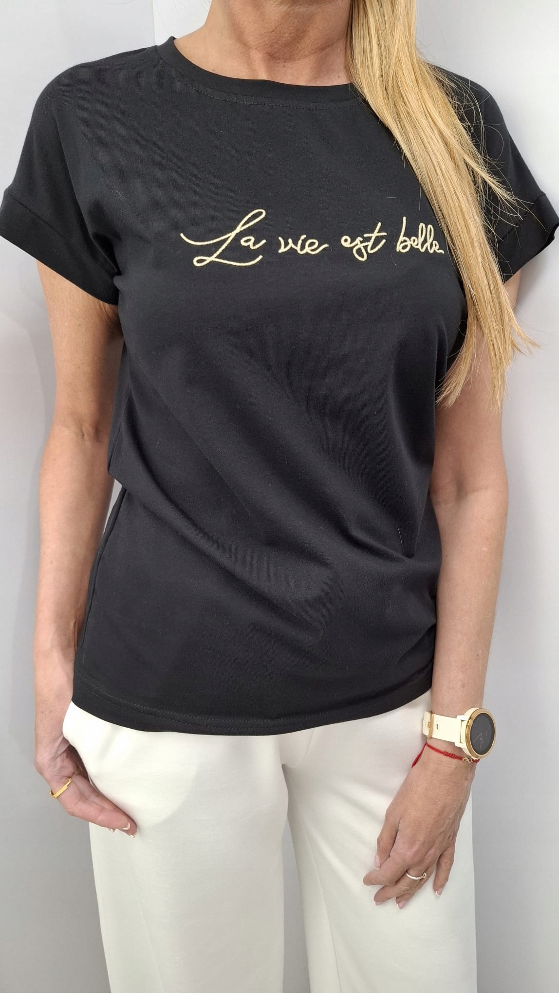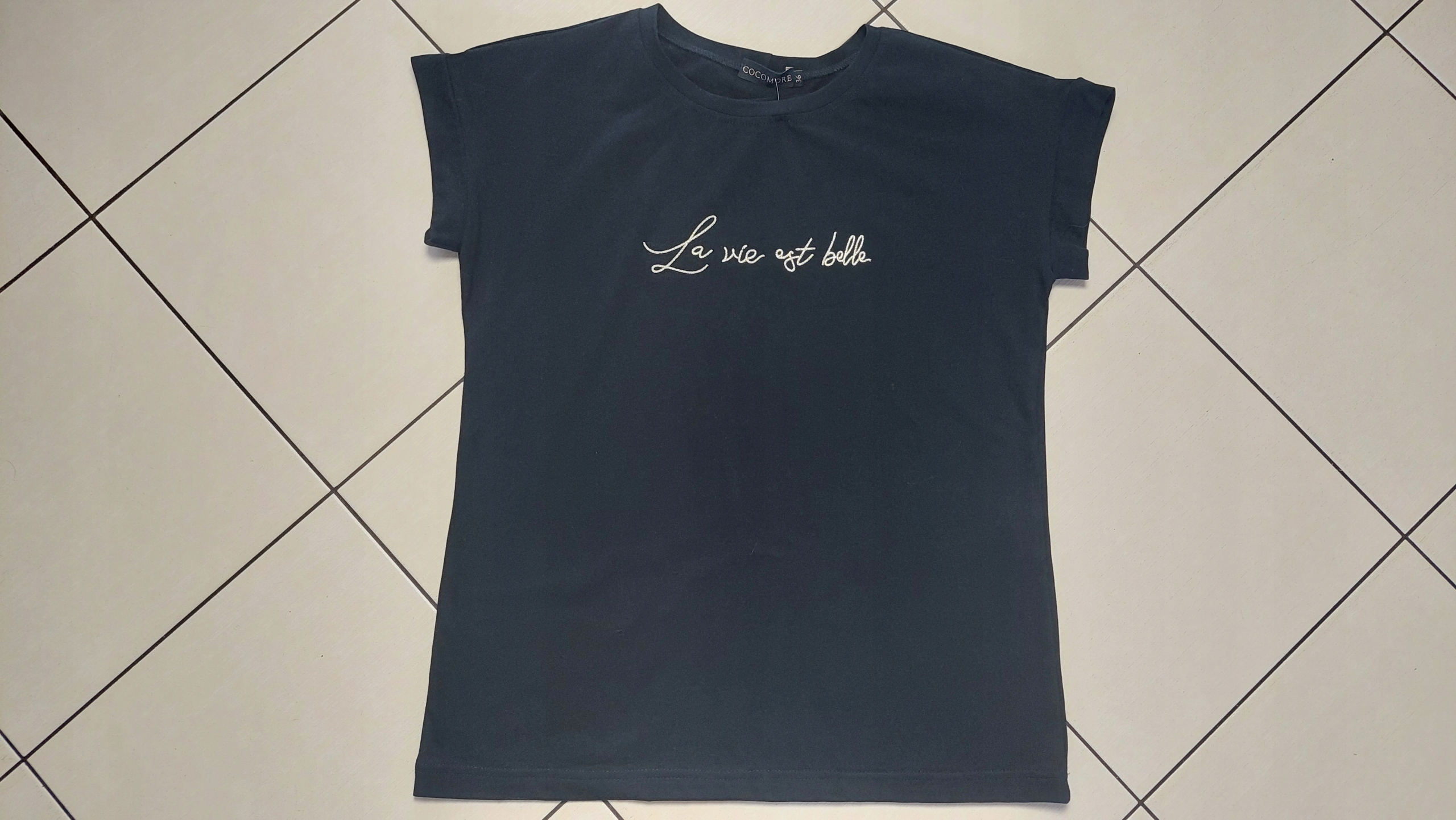 COCOMORE T-shirt Bluzka z Haftem Czarny + Złoty 40/L NEW
