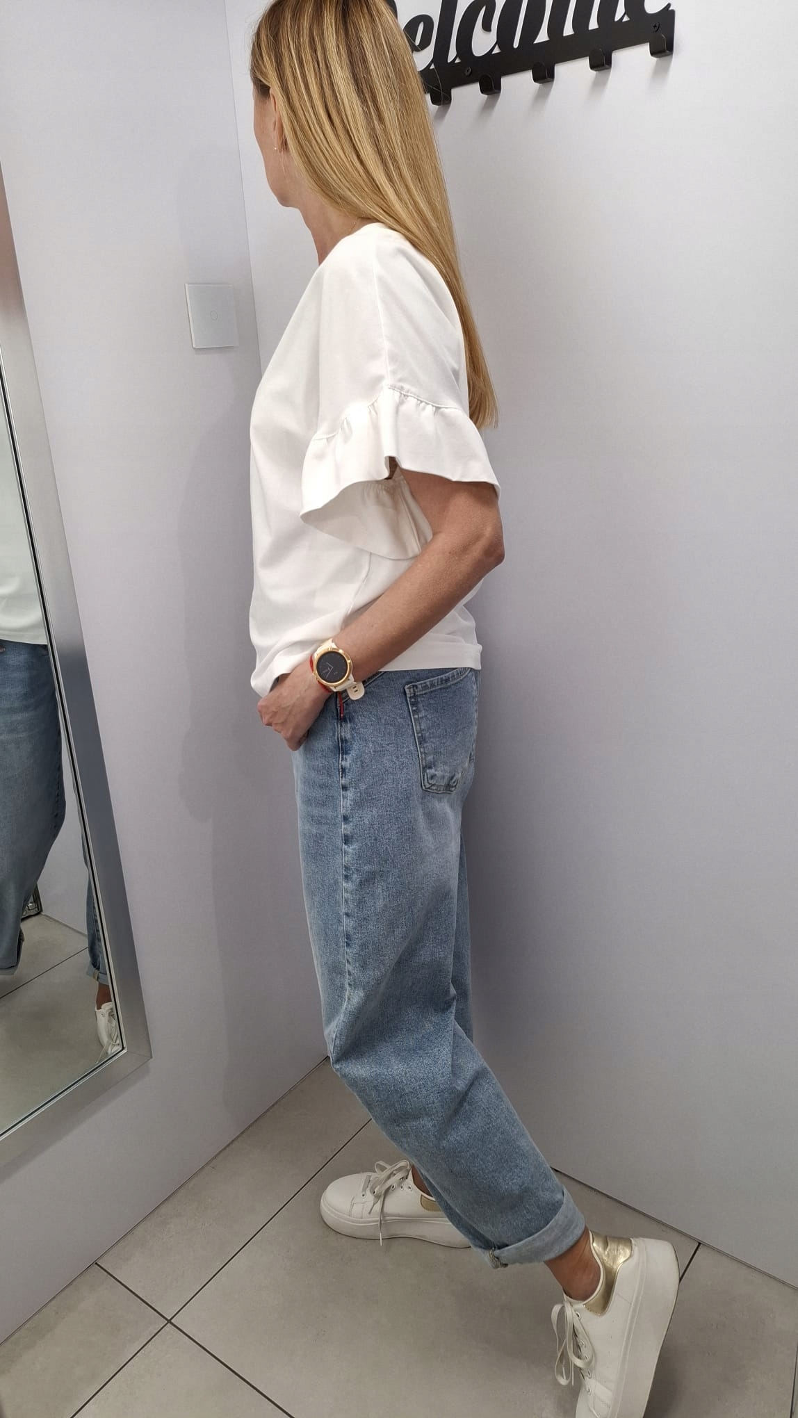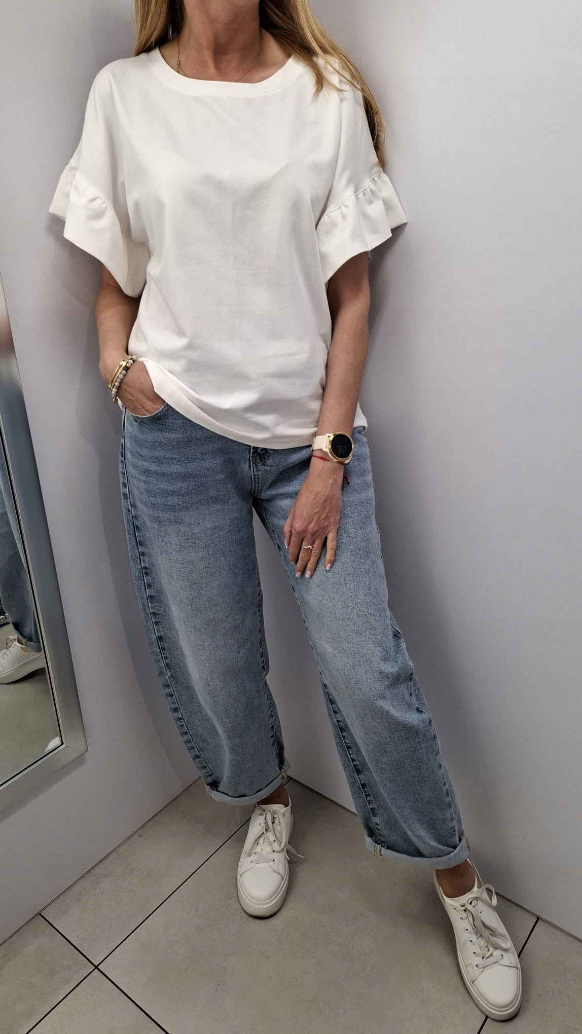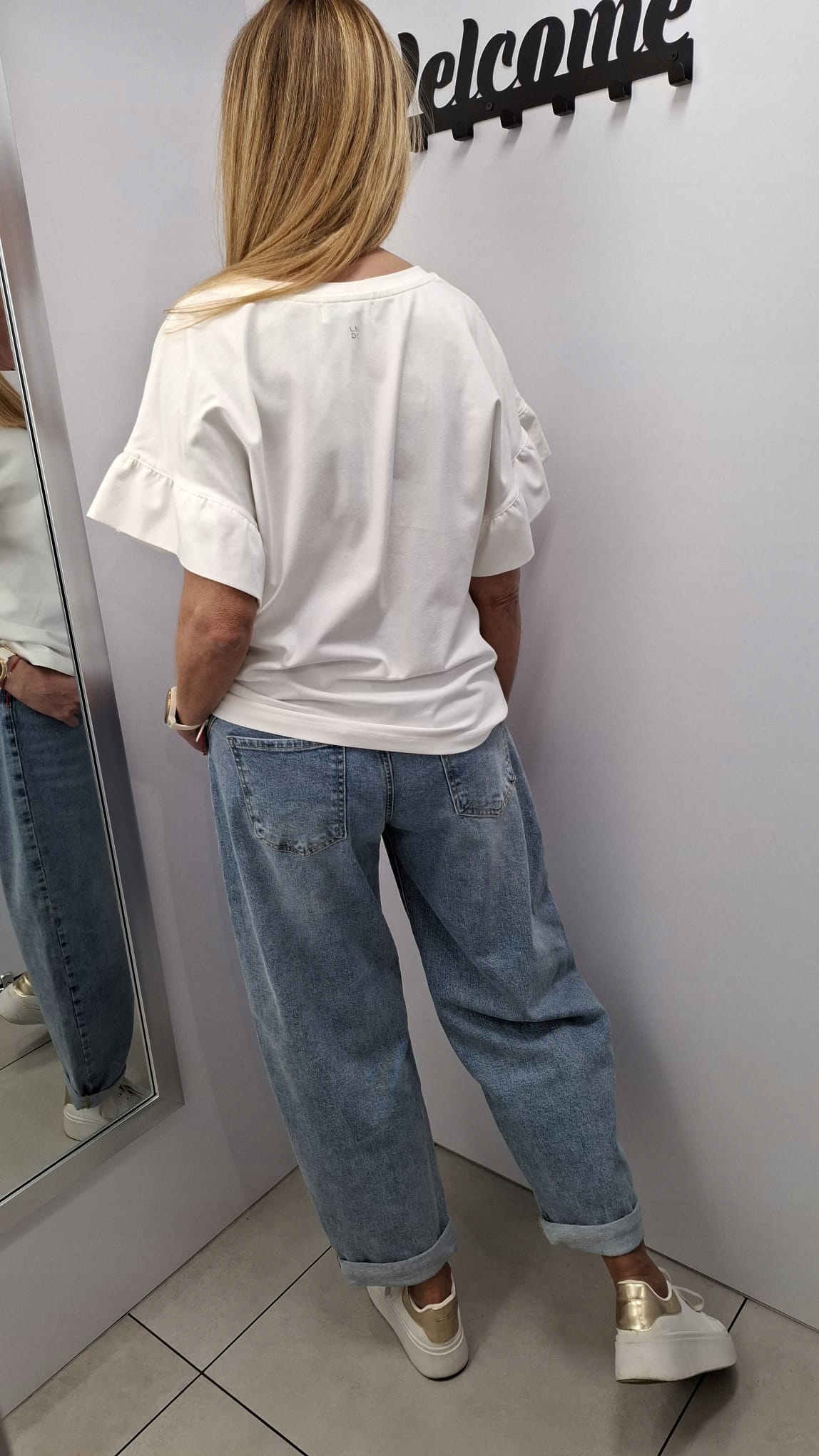 - Rewelacyjna bluzka z falbankami na rękawach. Wykonana z wysokiej jakości materiału. Na plecach znajduje się subtelne logo producenta