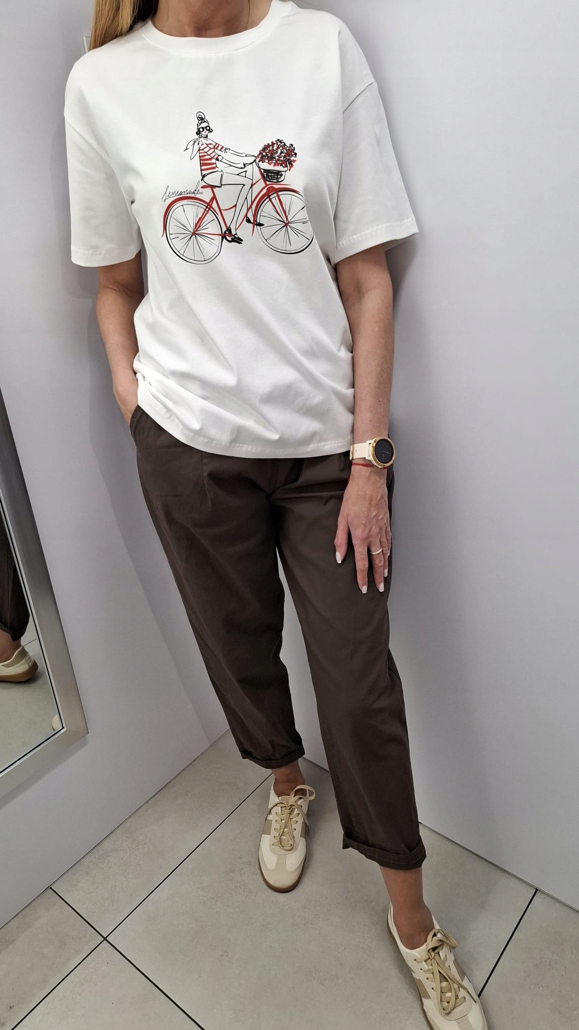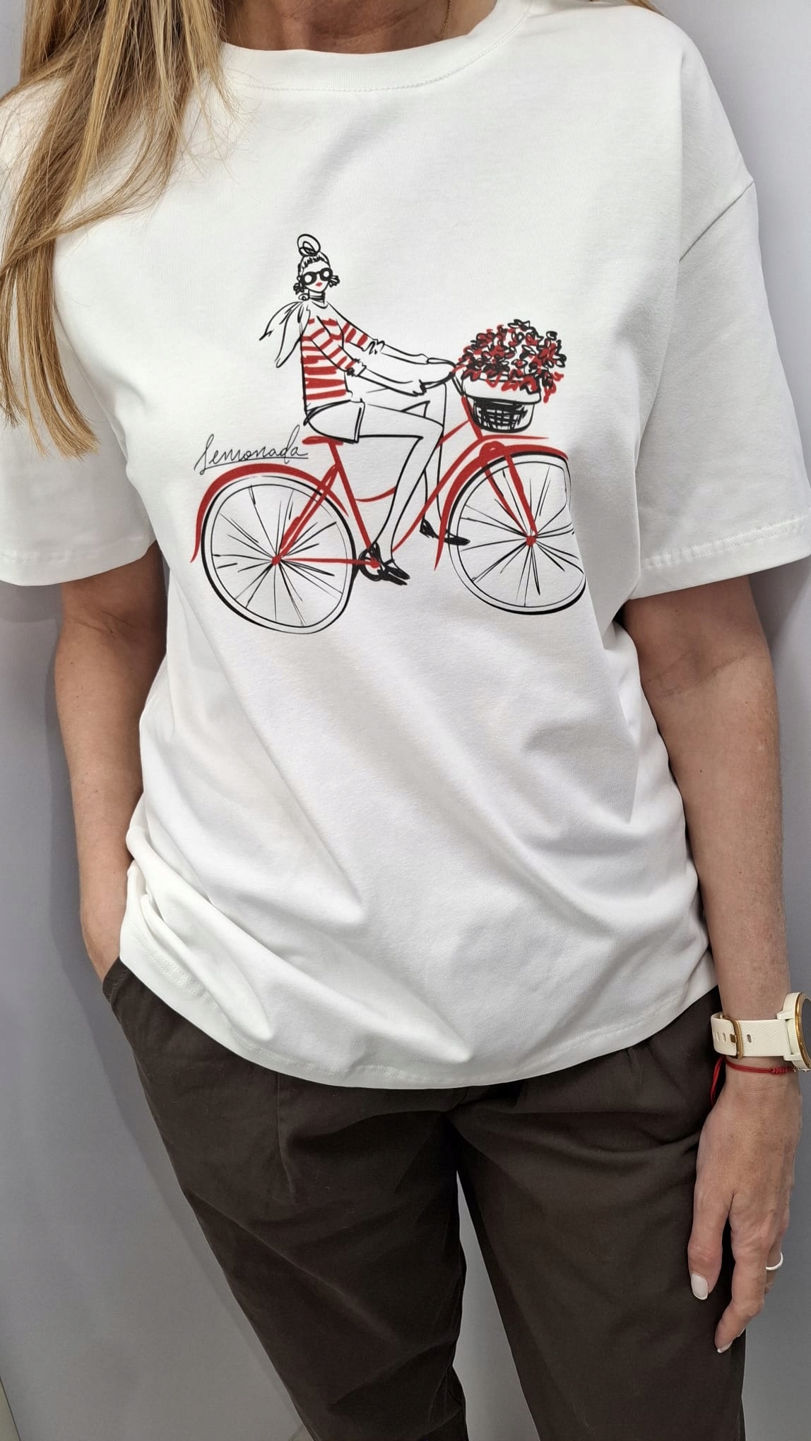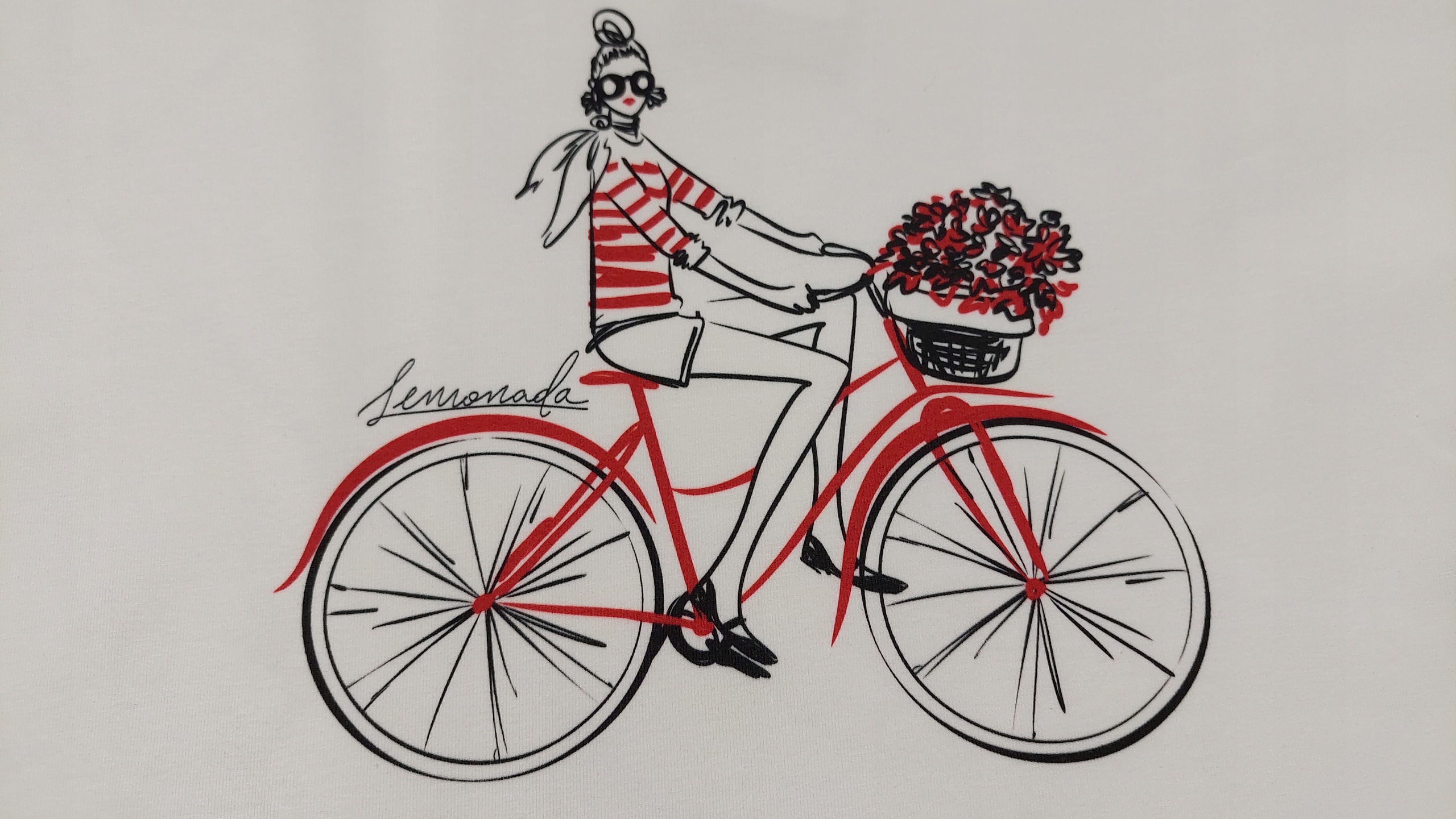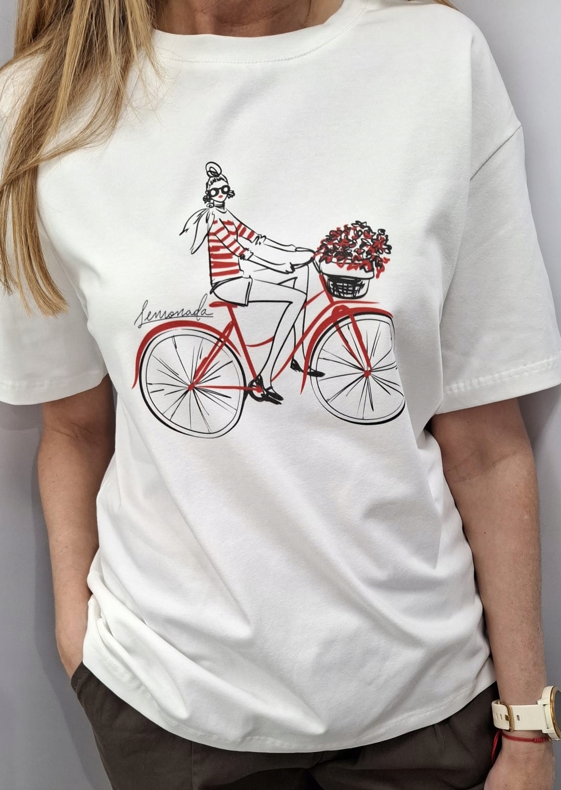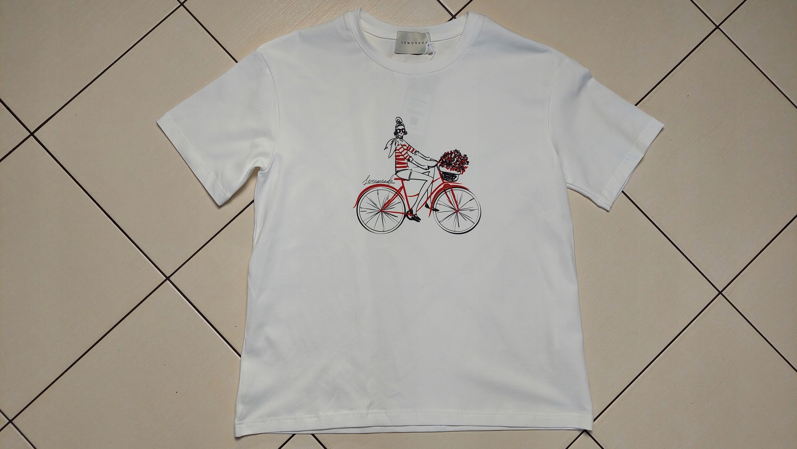 LEMONADA T-shirt Bluzka z Nadrukiem Biały Ecru + Czerwony Rower UNI Nowość