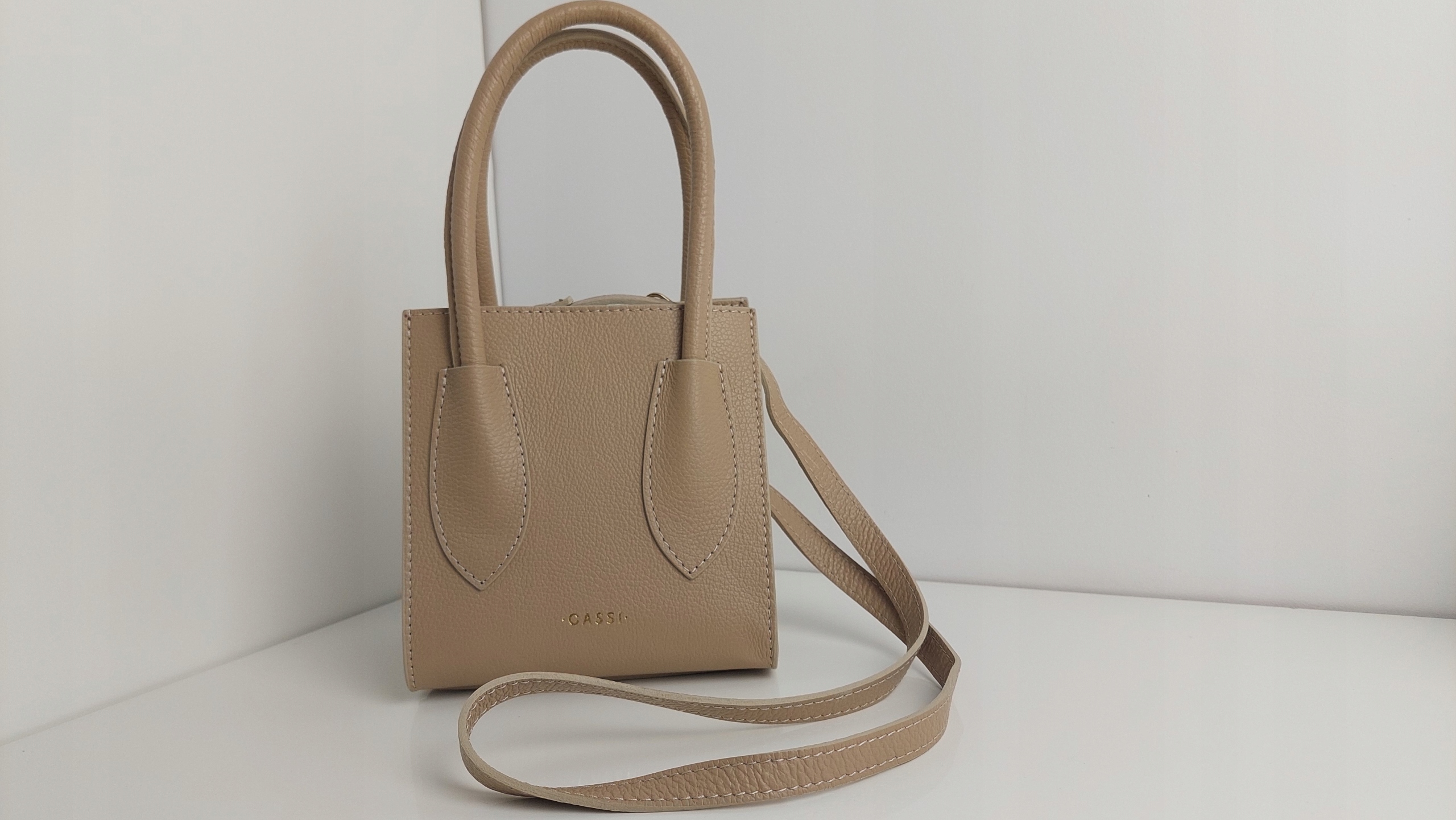 CASSI Torebka Skóra Naturalna C. Beżowy Mała Nowość HIT