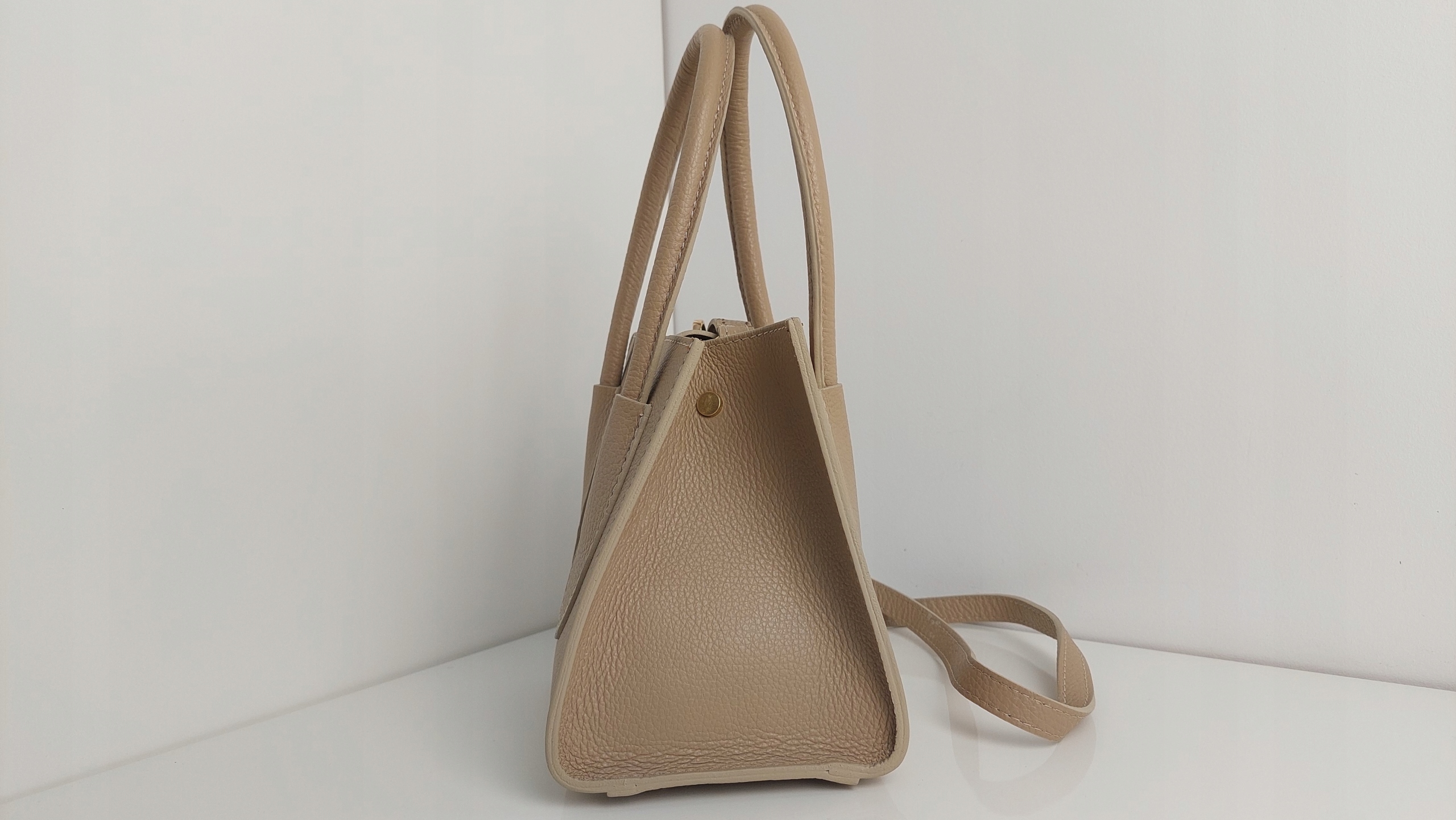 - Rewelacyjna torebka z paskiem na ramię i dwiema rączkami u góry, dzięki czemu można ją nosić na różne sposoby. Wykonana ze skóry groszkowej. Zapinana na magnes, W środku jedna otwarta kieszeń. Regulowany pasek skórzany.