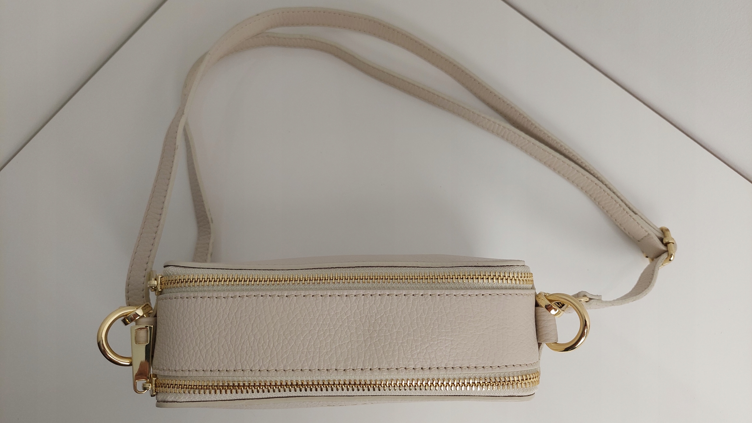 CASSI Torebka Skóra Naturalna Jasny Beżowy + Złoty Nowość