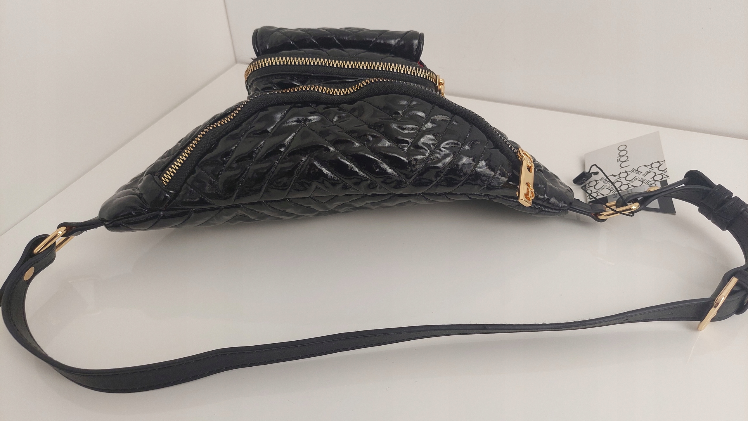 - Torebka typu nerka. Wykonana z niezwykle miękkiej skóry ekologicznej. Nerka posiada pasek z regulacją długości , okucia w kolorze złotym. wewnątrz dodatkową kieszonkę zapinaną na zamek. Oryginalności dodaje napis logo. Nerkę można nosić do sportowych stylizacji jak i na skos tak jak listonoszkę.