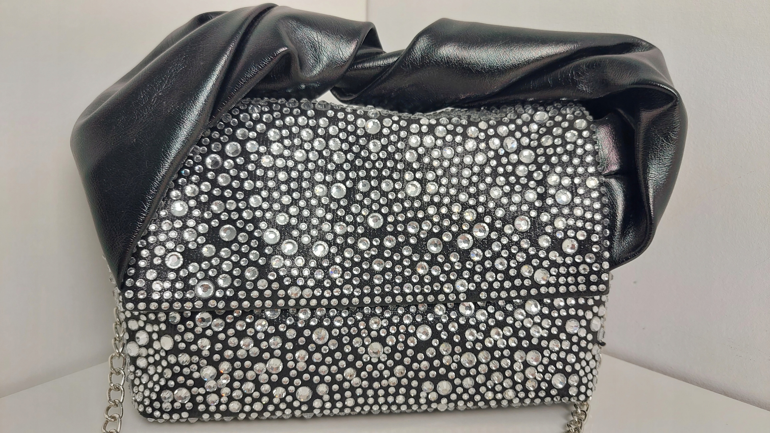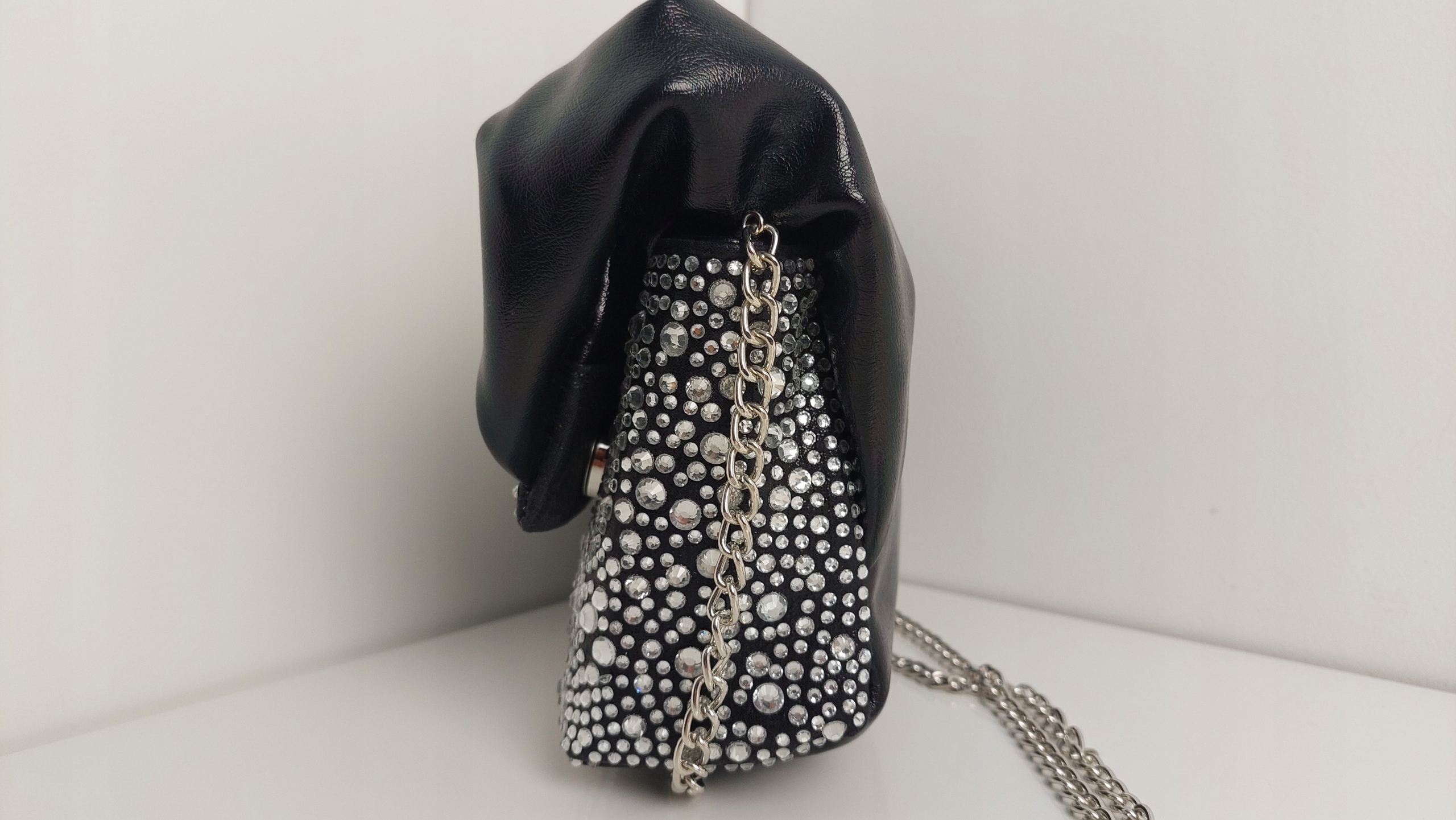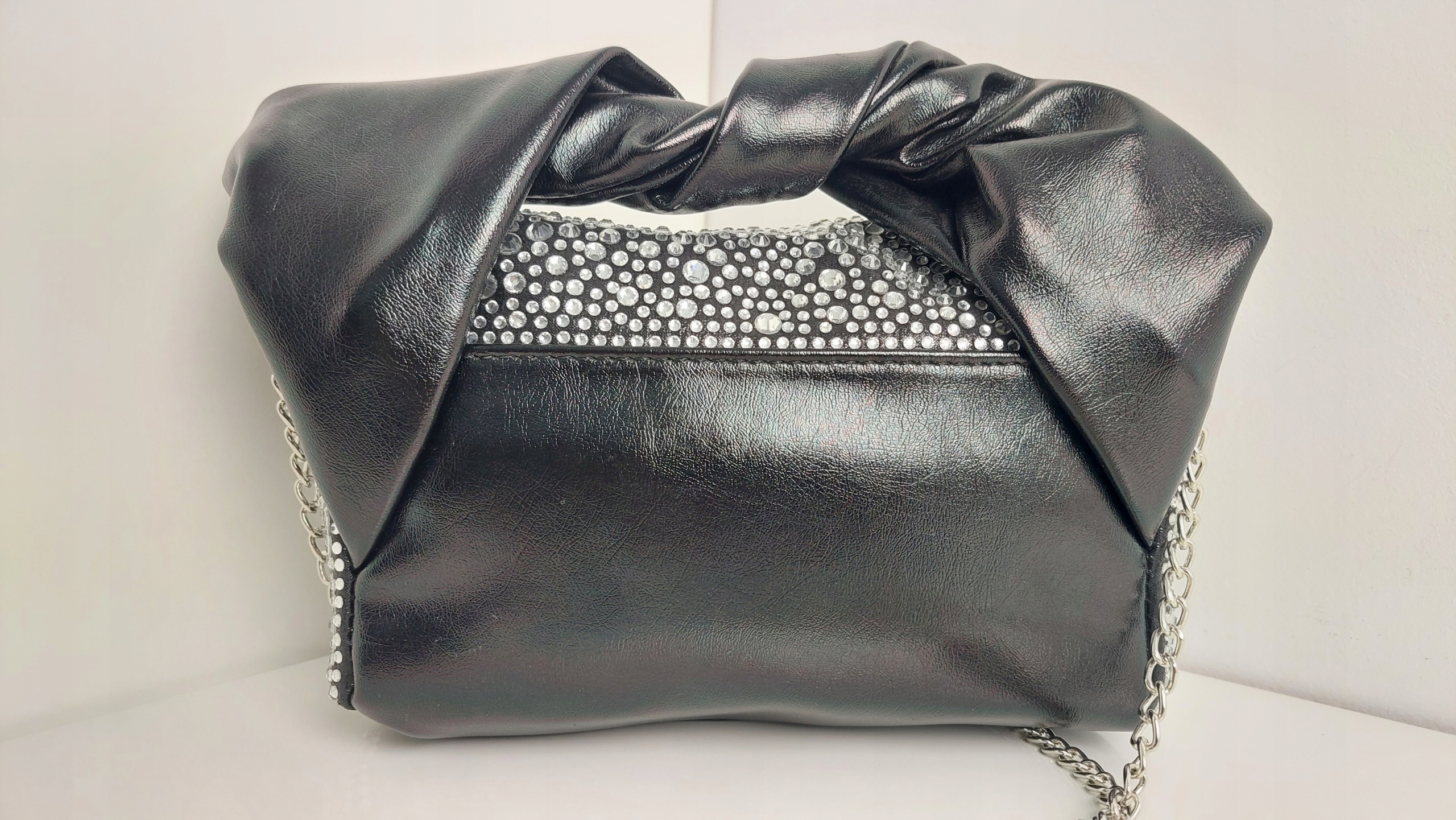 Torebka Wizytowa Eco Skóra + Cyrkonie Czarna + Srebrny Nowość