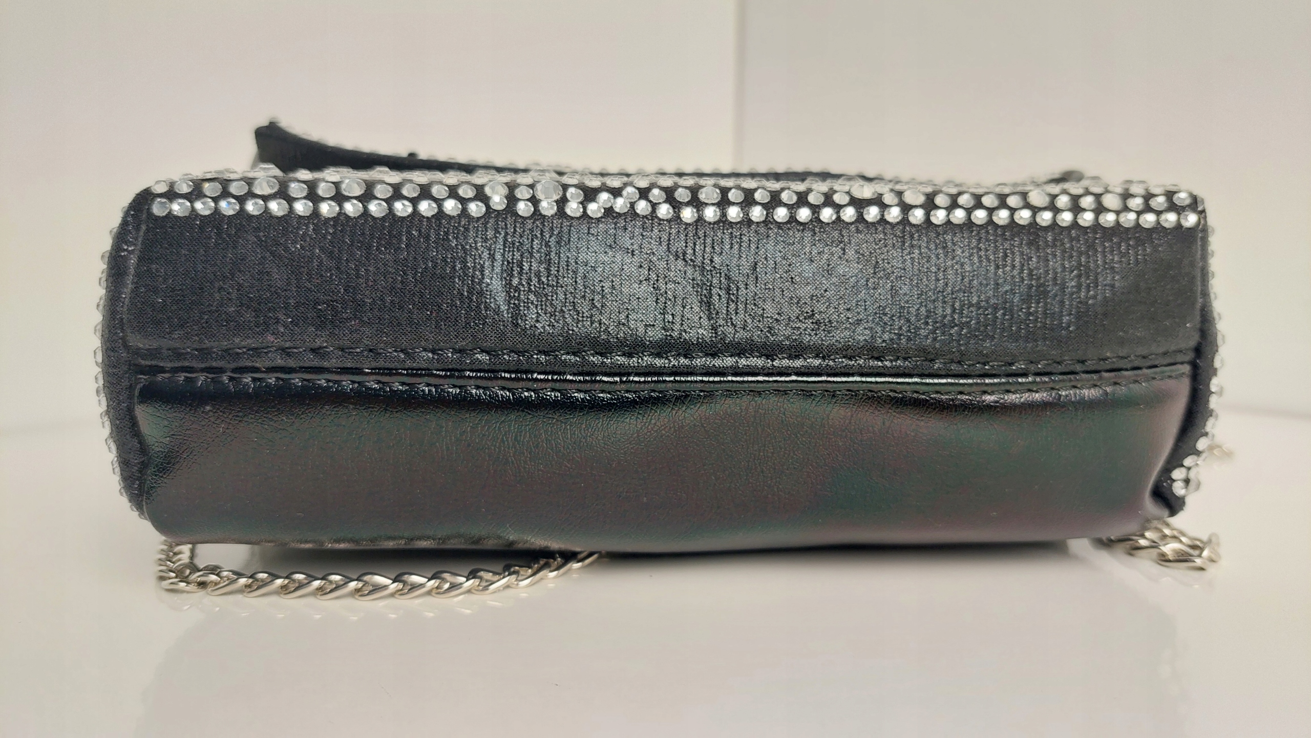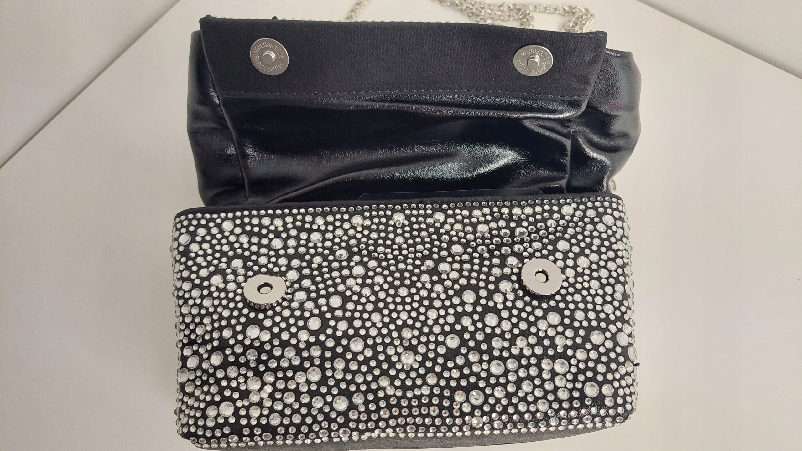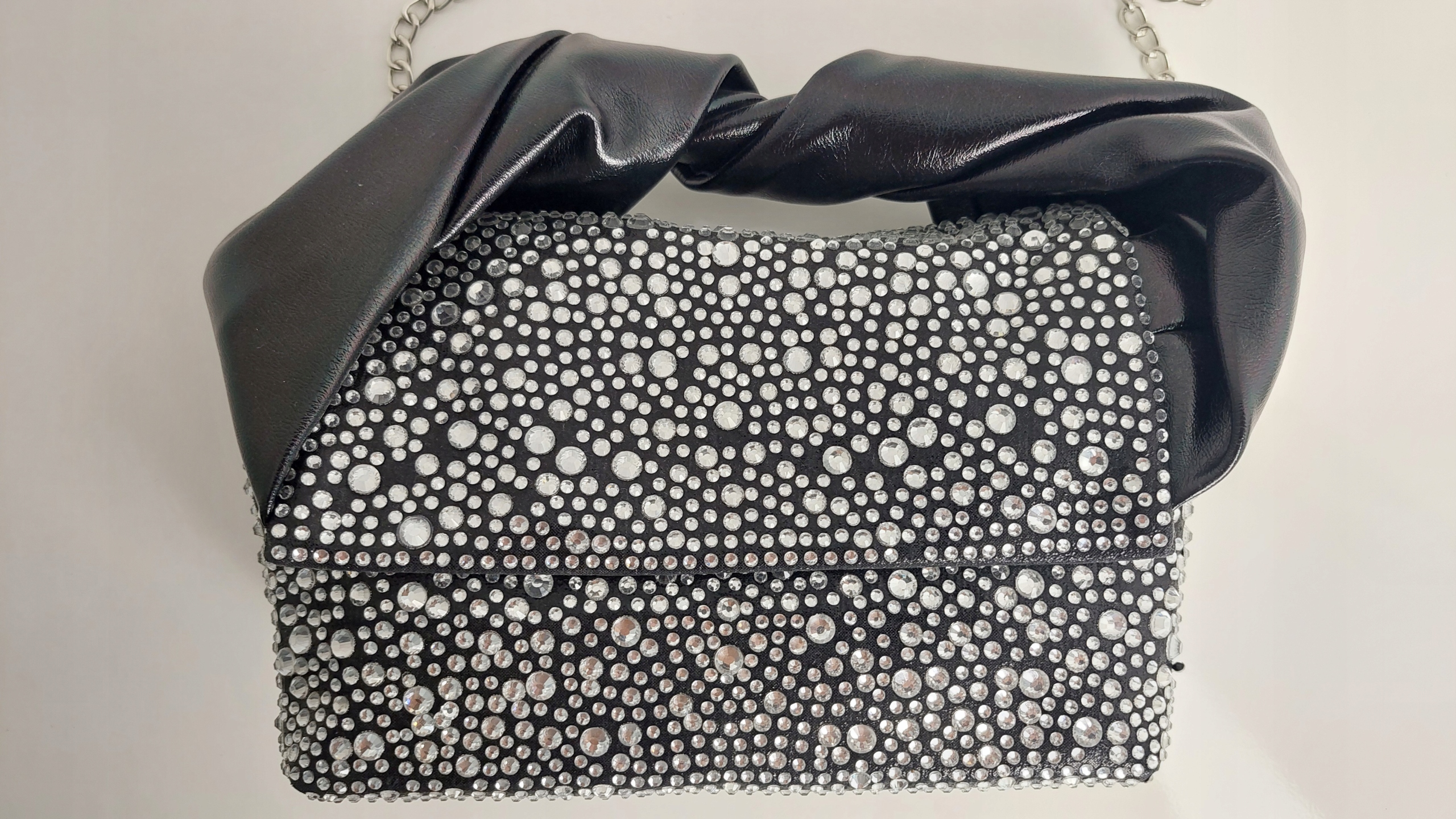 Torebka Wizytowa Eco Skóra + Cyrkonie Czarna + Srebrny Nowość